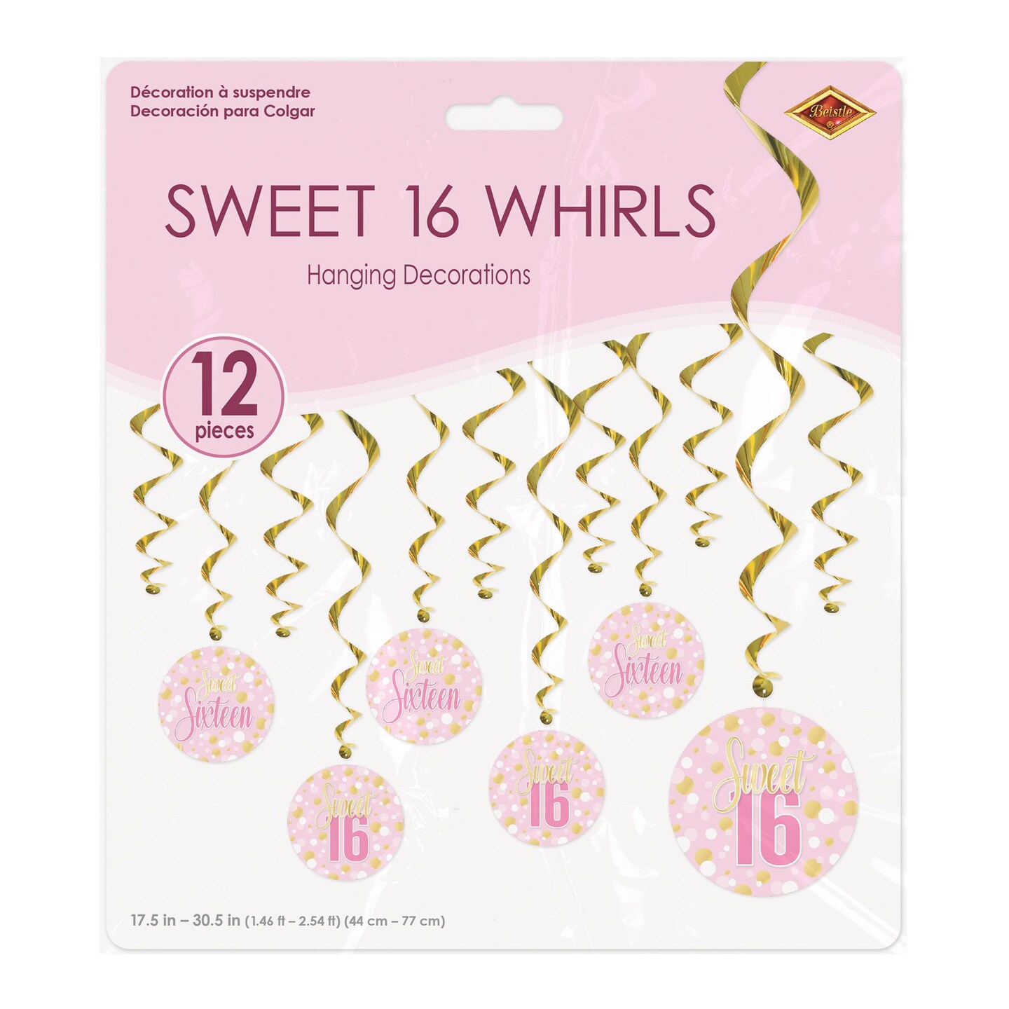72 Pack Bulk Sweet 16 Whirls Hanging Decorations