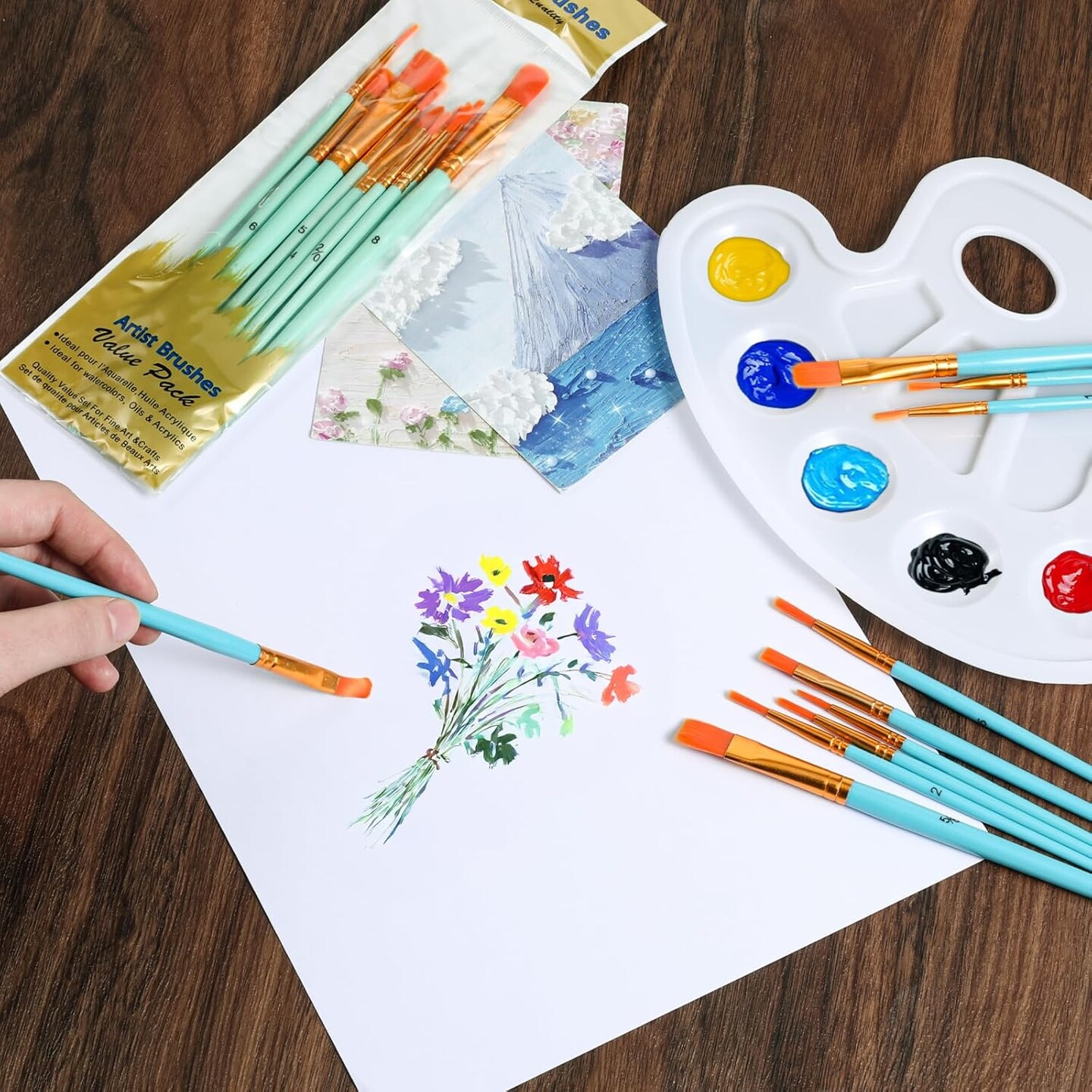 72 Pcs 60 Paint Brushes and 12 Paint Palette Tray, Paints Brushes Palette Set, Professional Artist Painting Set for Watercolor, Oil, Acrylic Painting