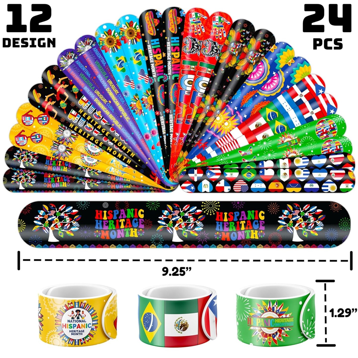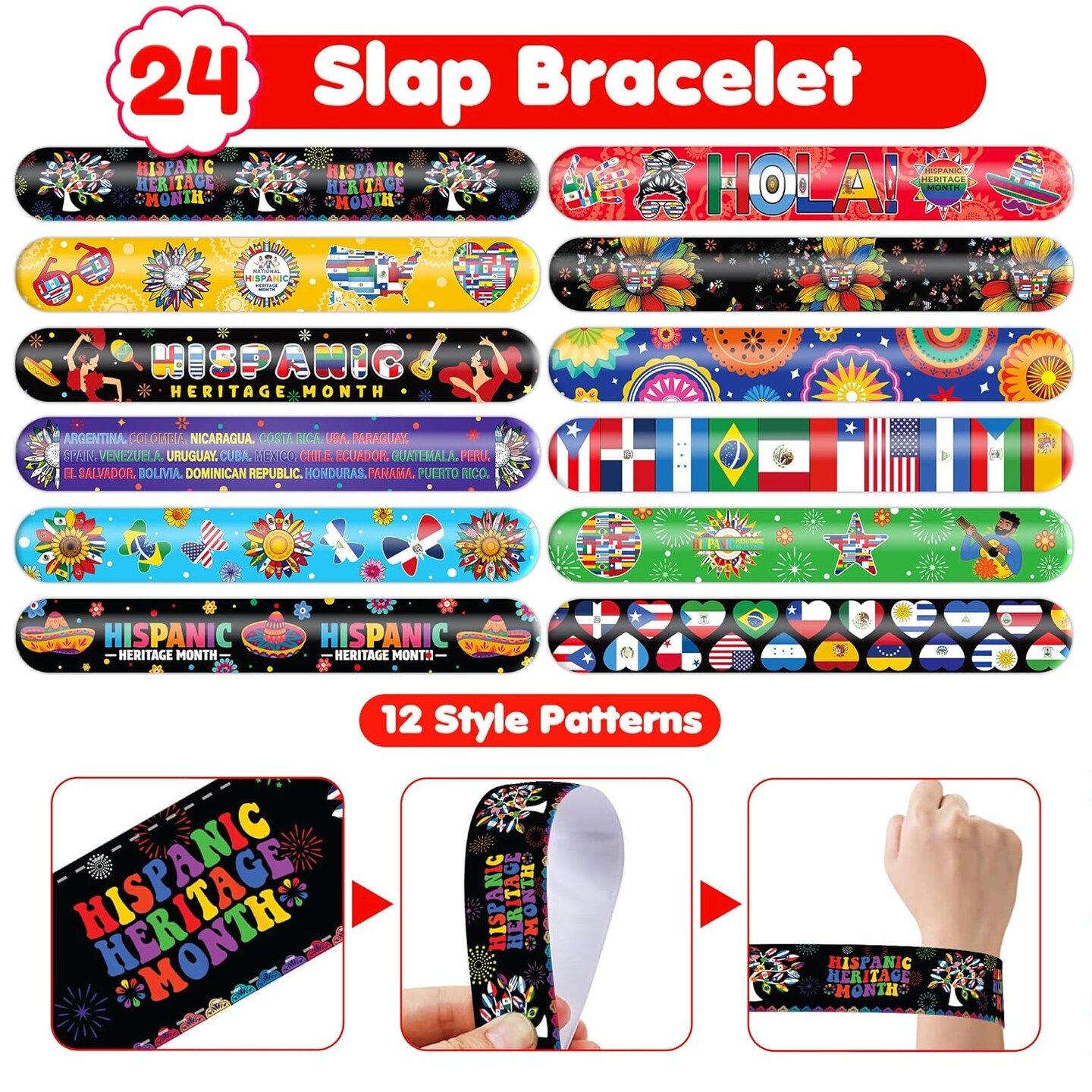 72 PCS Hispanic Heritage Month Party Favors - 48 Temporary Tattoos & 24 Slap Bracelets