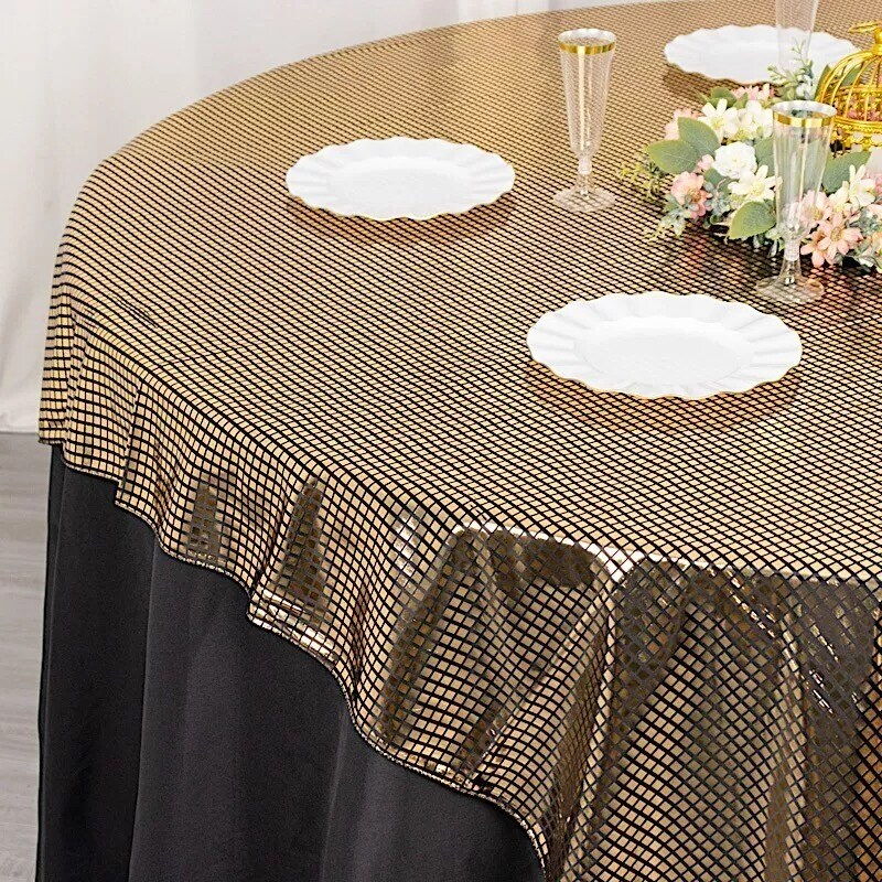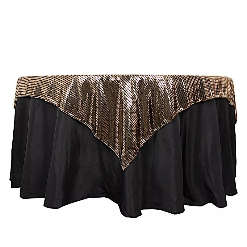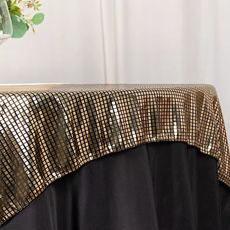 72" x 72" Black Gold Polyester Square Table Overlay Mirror Foil Party Events