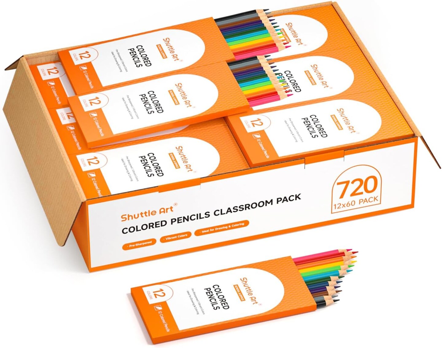 720 Colored Pencils Bulk, 12 Vibrant Colors, Pack of 60, Pre-sharpened Coloring Pencils, Wood Colored Pencil for Kids Teachers, Classroom Essentials, Back to School Supplies