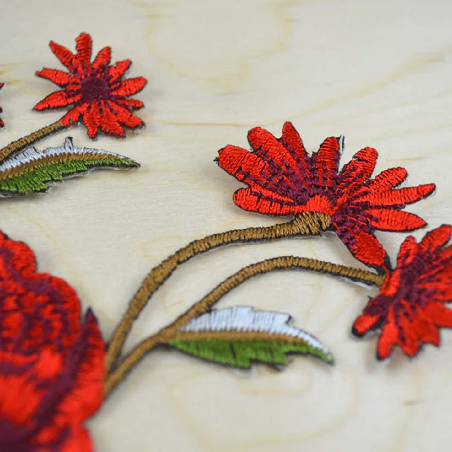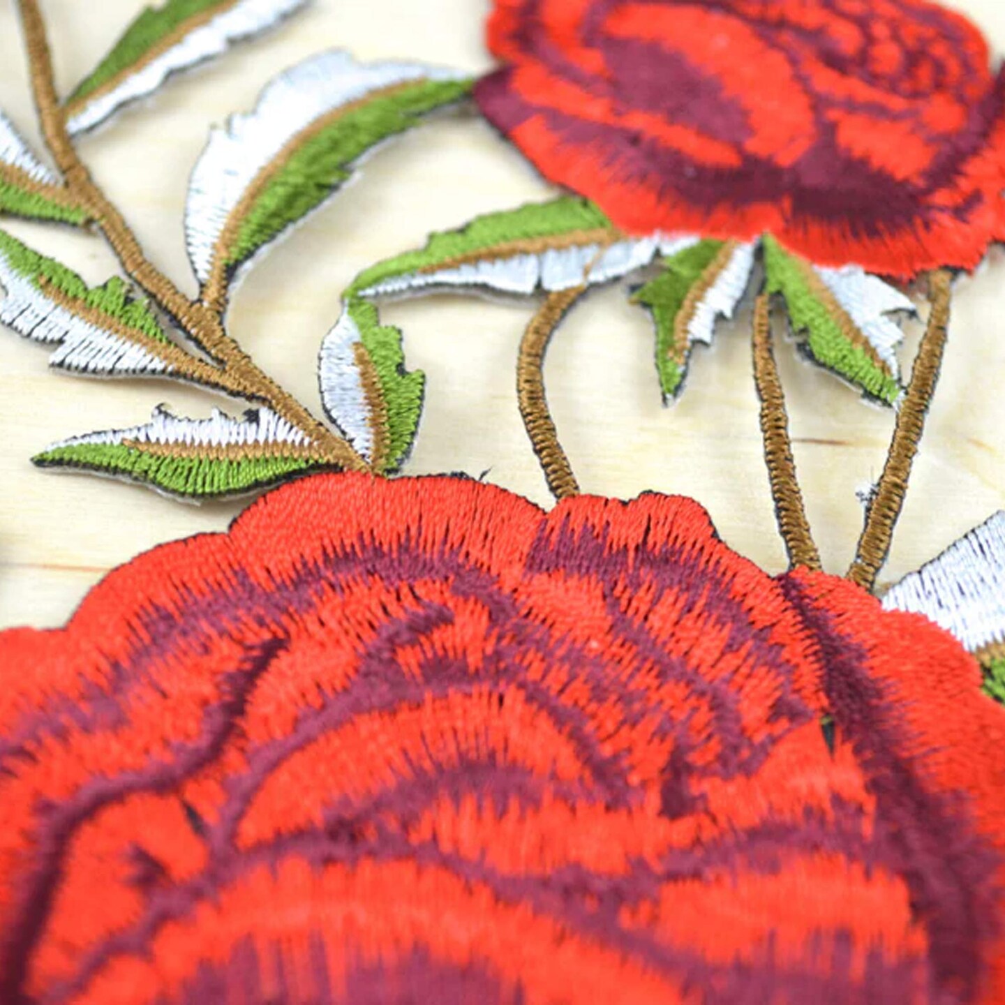 7.25" x 7.75" Red Rose Embroidery Patch Iron On Floral Motif Applique Craft