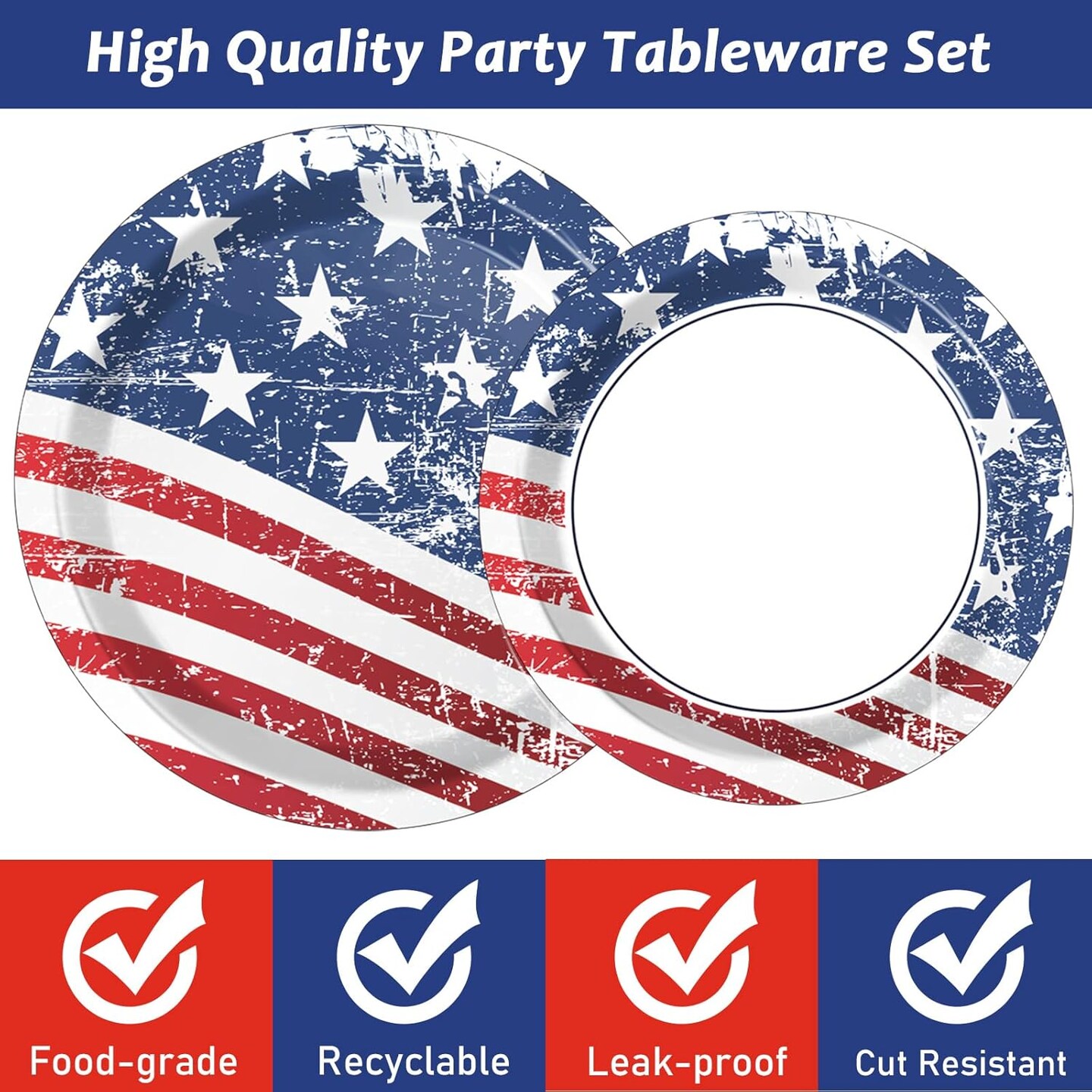 72pcs 4th of July Plates Set – 36 9" & 36 7" Patriotic Disposable Tableware (Flag Party)