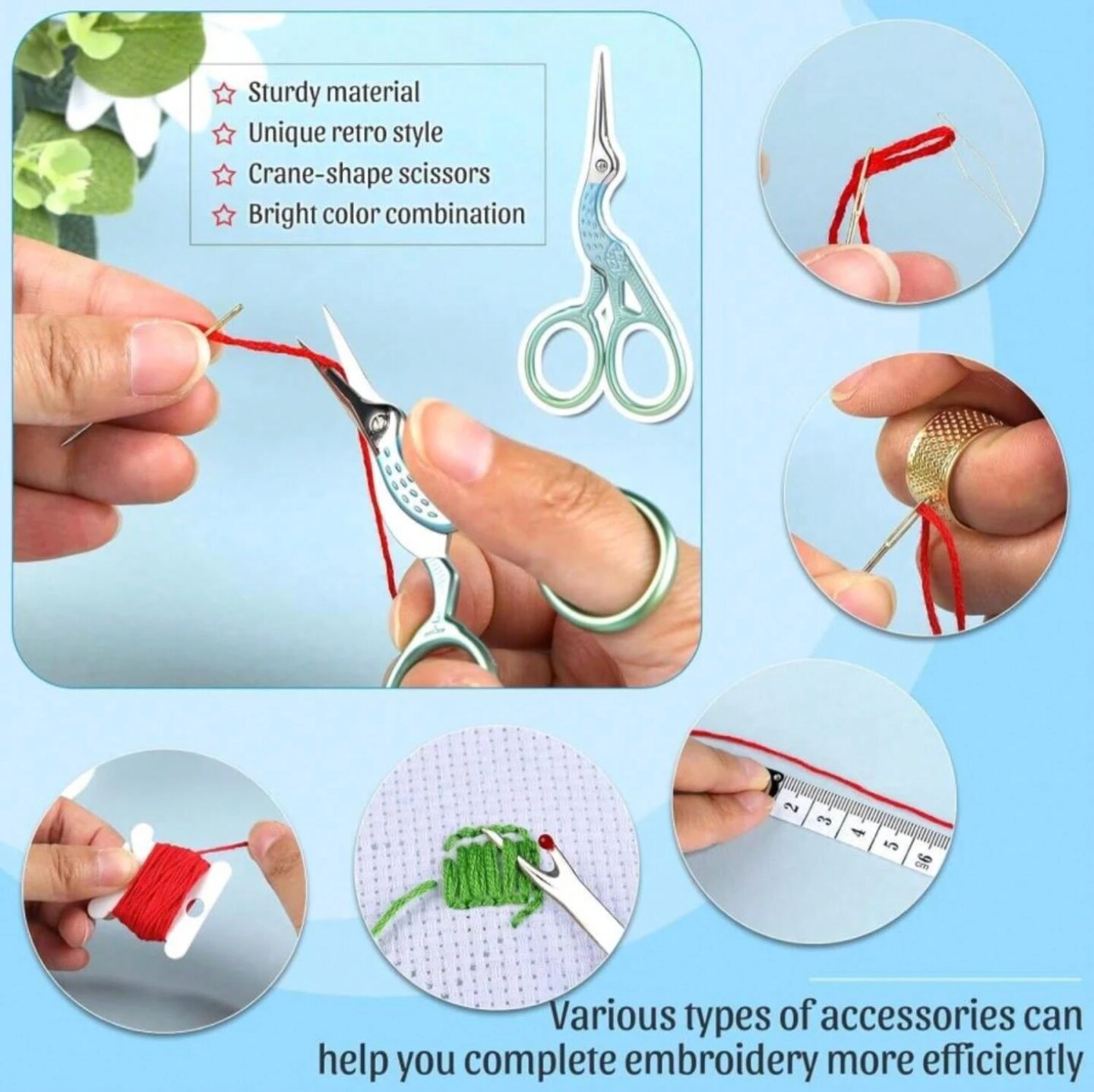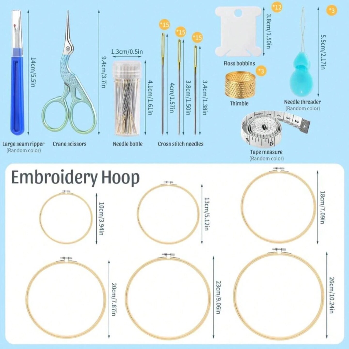 72-Piece Cross-Stitch & Embroidery Starter Kit – Hoops, Floss, Needles, Scissors & Tools for Beginners & Adults