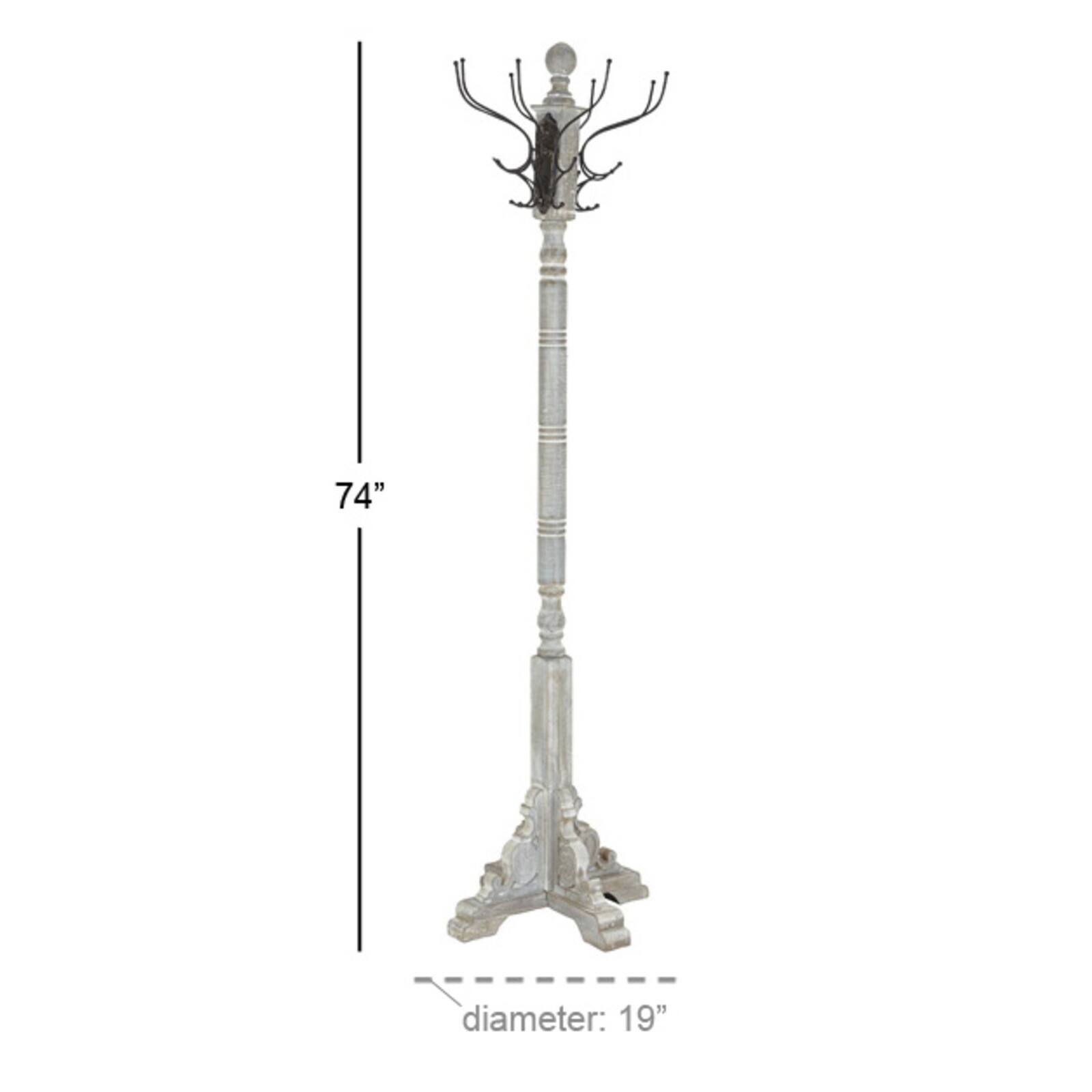 74" Gray Wood & Metal Farmhouse Coat Rack