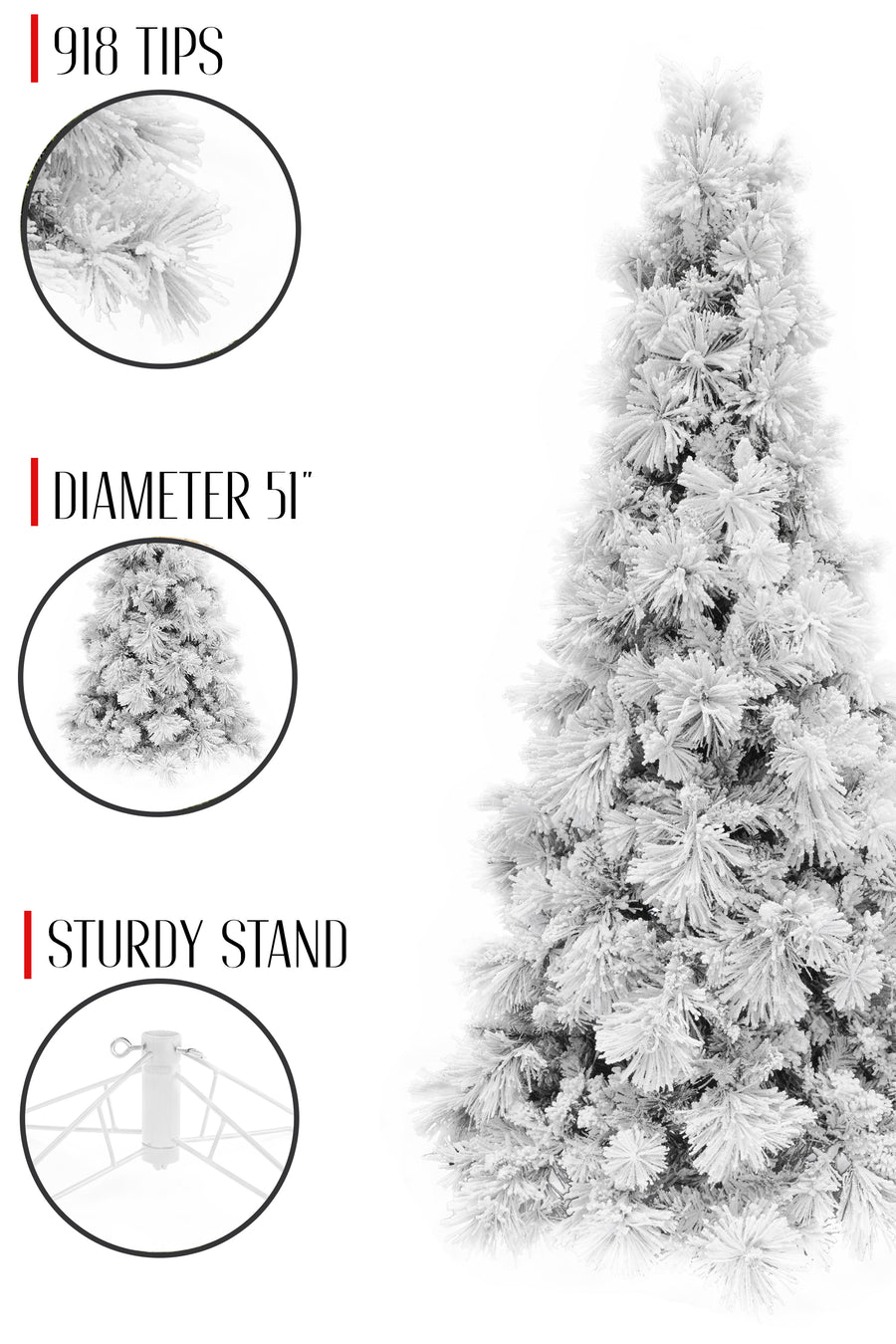7.5' Slim Snow Flocked Atka Christmas Tree with Metal Stand