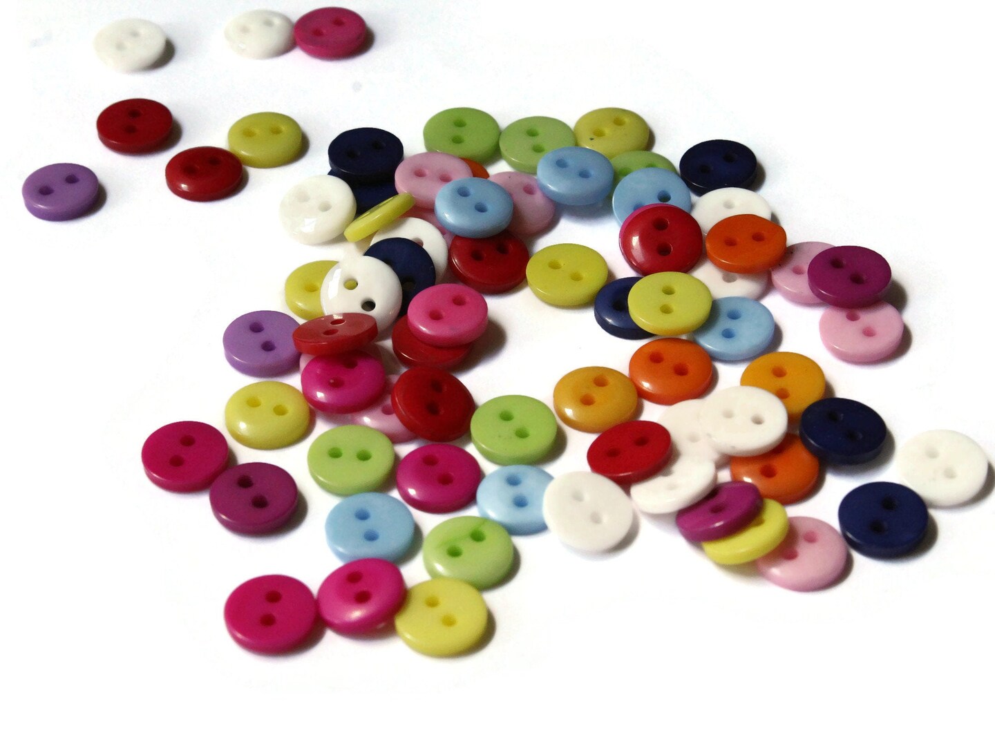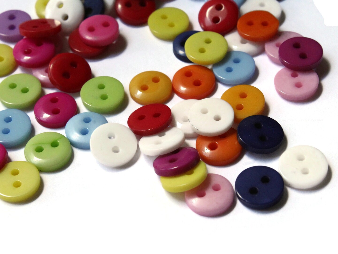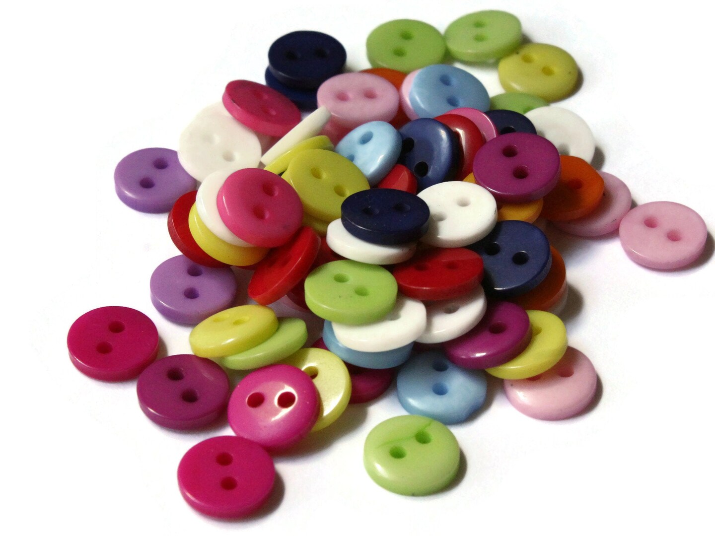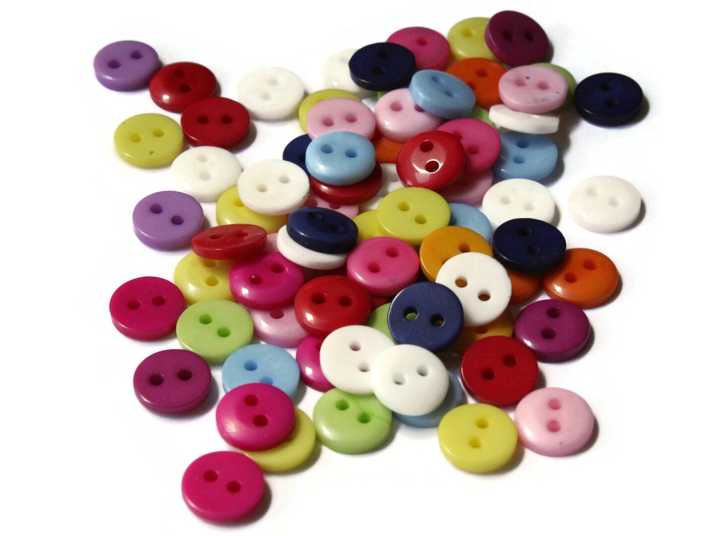 75 9mm Mixed Color Flat Round Buttons Plastic Two Hole Buttons
