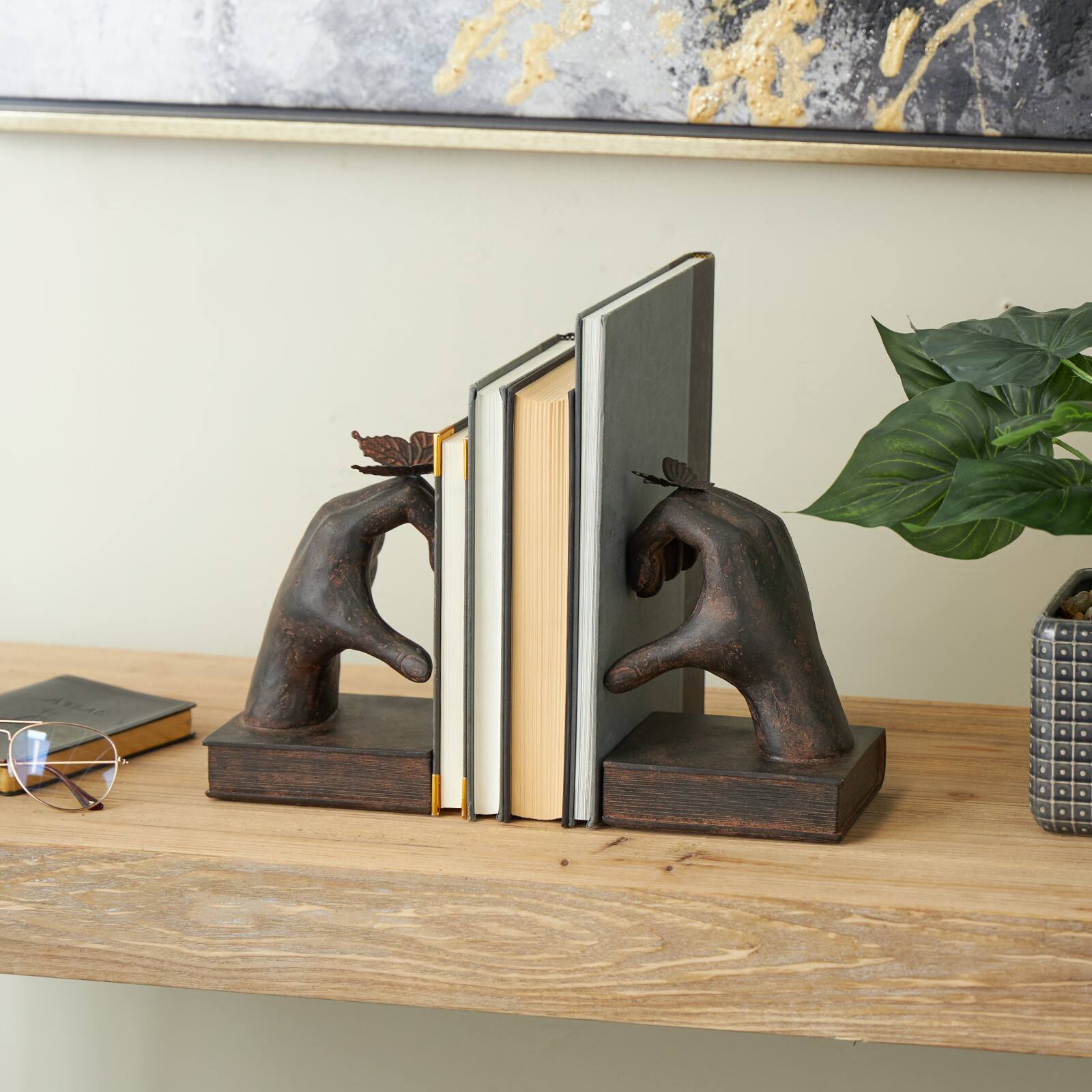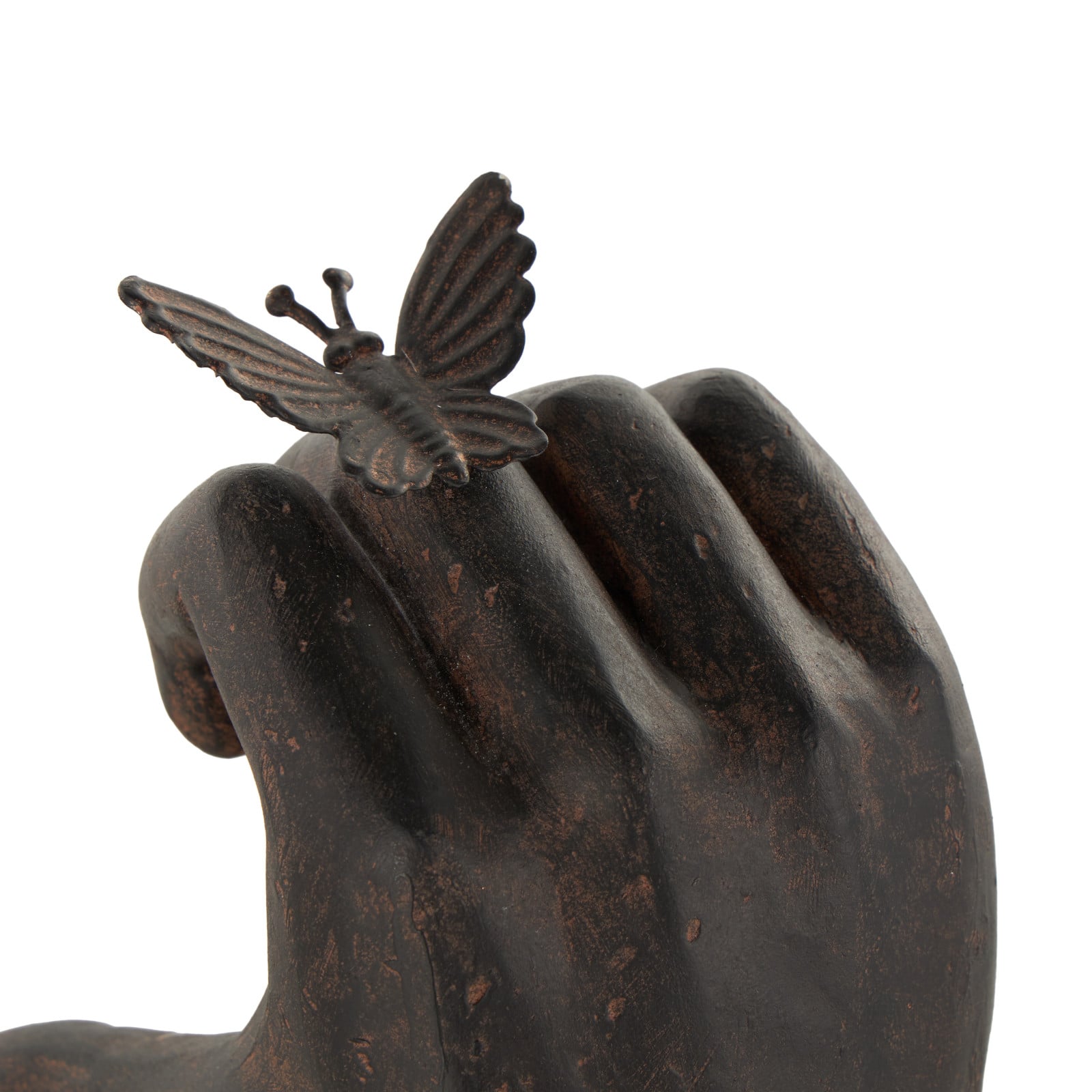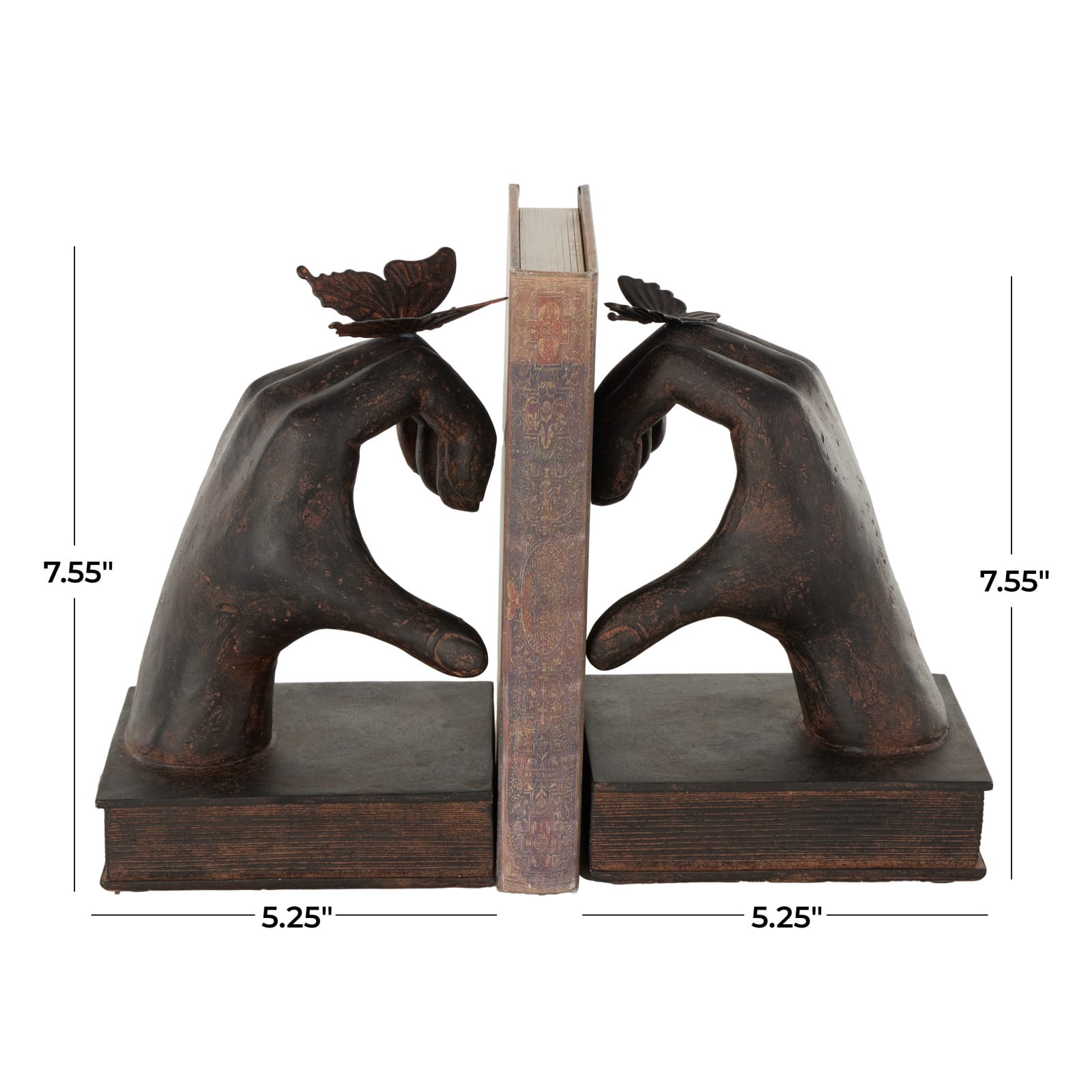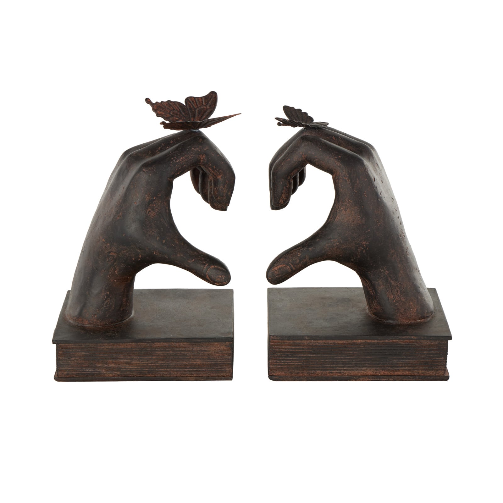 7.5" Dark Brown Hands Heart Inspired Decorative Bookend Set with Butterfly & Copper Accents