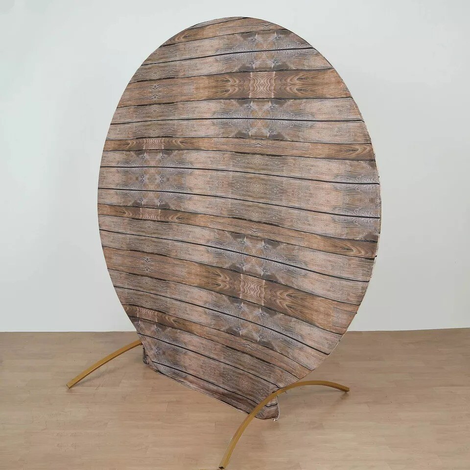 7.5 ft Brown Fitted Spandex Rustic Wood Design Round Backdrop Stand Cover Party