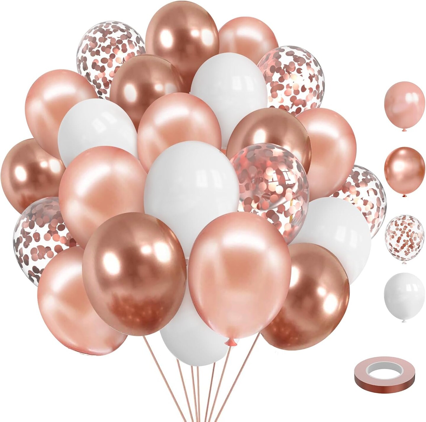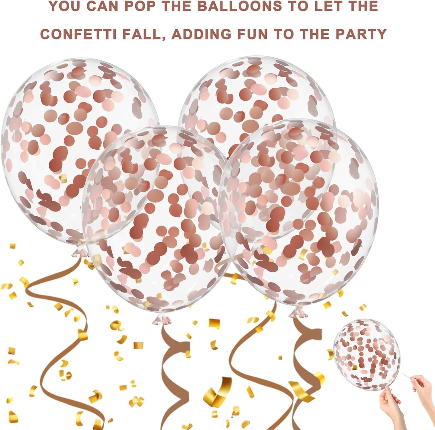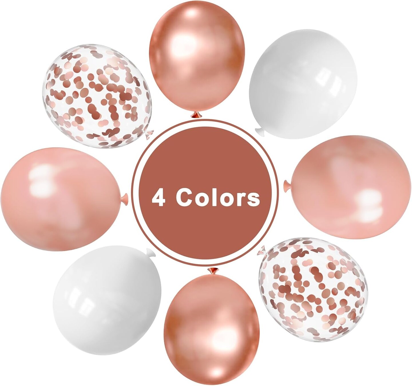 75 Pcs 12 Inch Rose Gold Balloons,Rose Gold and White Balloons,Rose Gold Metallic Latex Confetti Balloons for Birthday Wedding Engagement Bridal Shower Bachelorette Party Decorations