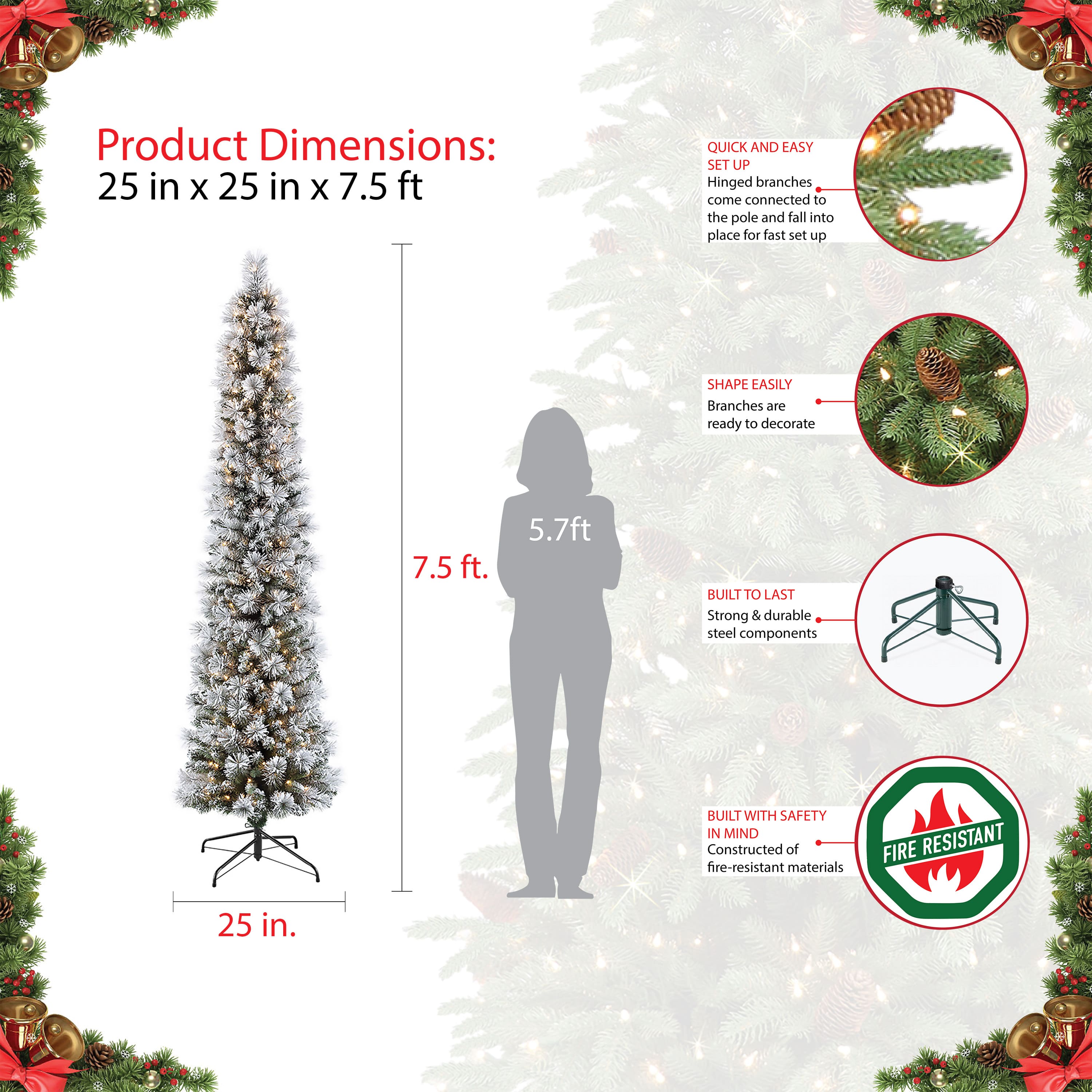 7.5ft. Pre-Lit Flocked Portland Pine Slim Artificial Christmas Tree, Clear Lights