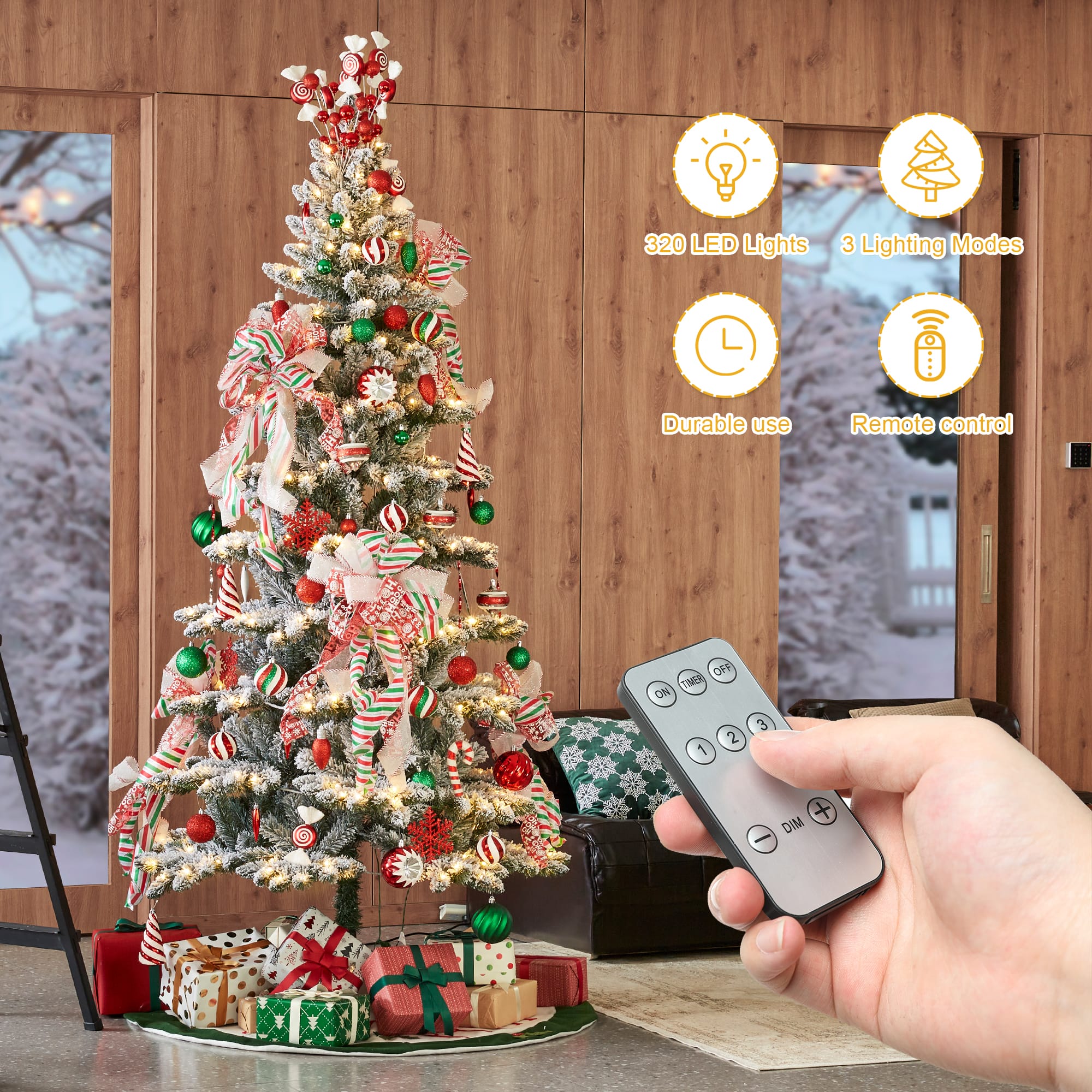 7.5ft. Pre-Lit Flocked Slim Spruce Artificial Christmas Tree, Warm White LED Lights