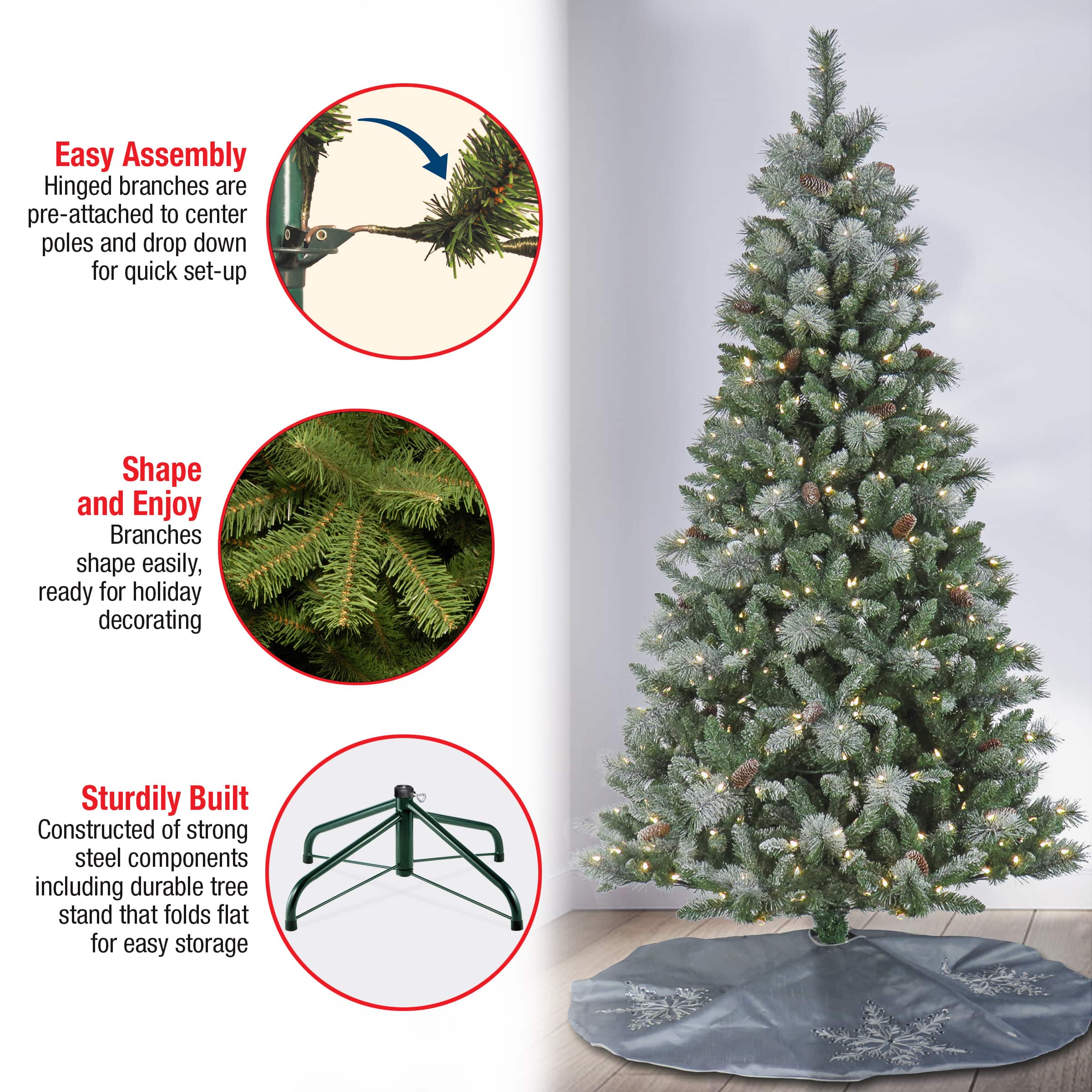 7.5ft. Pre-Lit Frosted Conconully Pine Artificial Christmas Tree, Warm White LED Lights