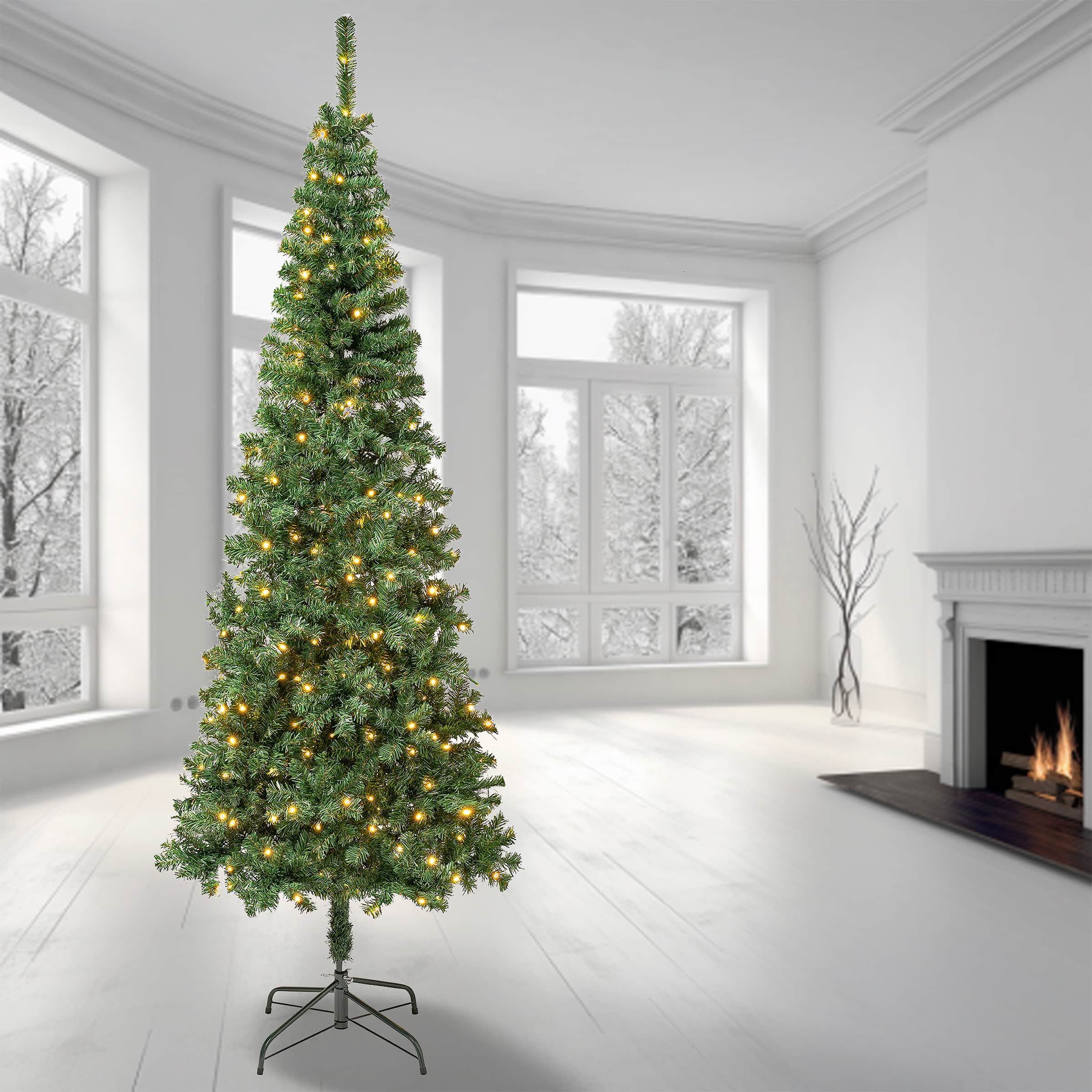 7.5ft. Pre-Lit Oakley Hills Snow Hinged Tree with Flocked Pinecones, Warm White LED Lights