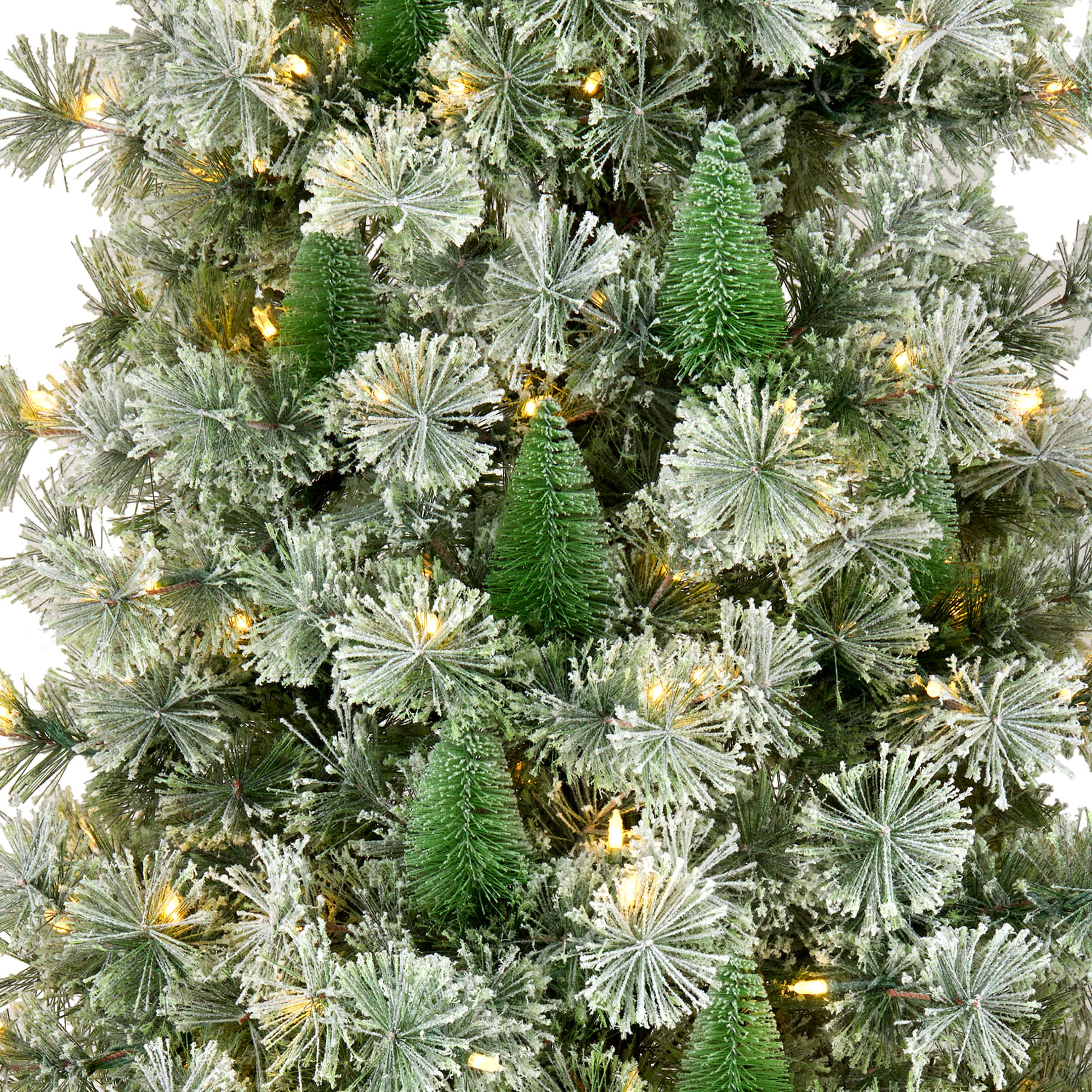 7.5ft. Pre-Lit Snowy Bottle Brush Slim Artificial Christmas Tree, Clear Lights