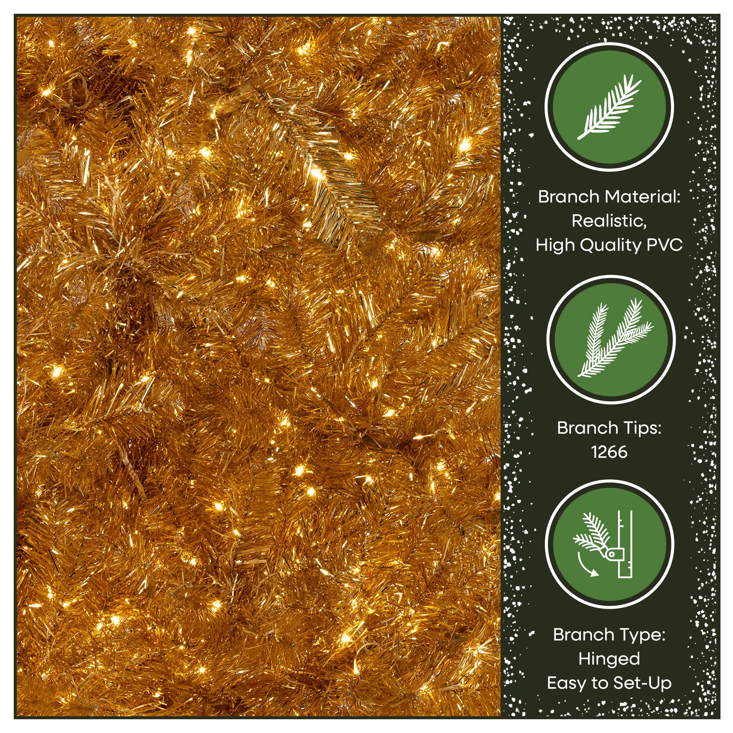 7.5ft. Pre-Lit True Gold Metallic Artificial Christmas Tree, Clear LED Infinity Lights®