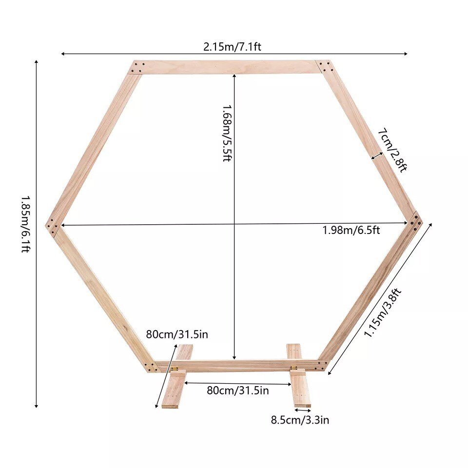 7.6 FT Hexagon Wood Wedding Arch Frame Decor Wood Hexagon Arch Backdrop Stand
