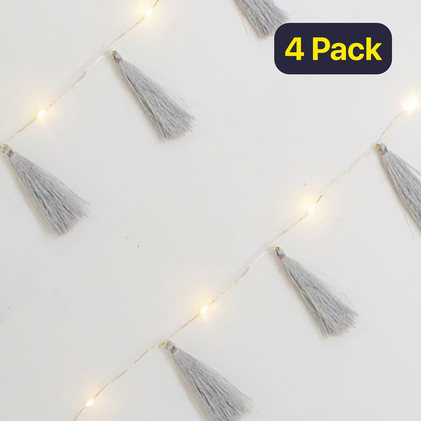 7.7 Ft Boho Tassel Light Garland – Battery Operated with 20 LED Lights