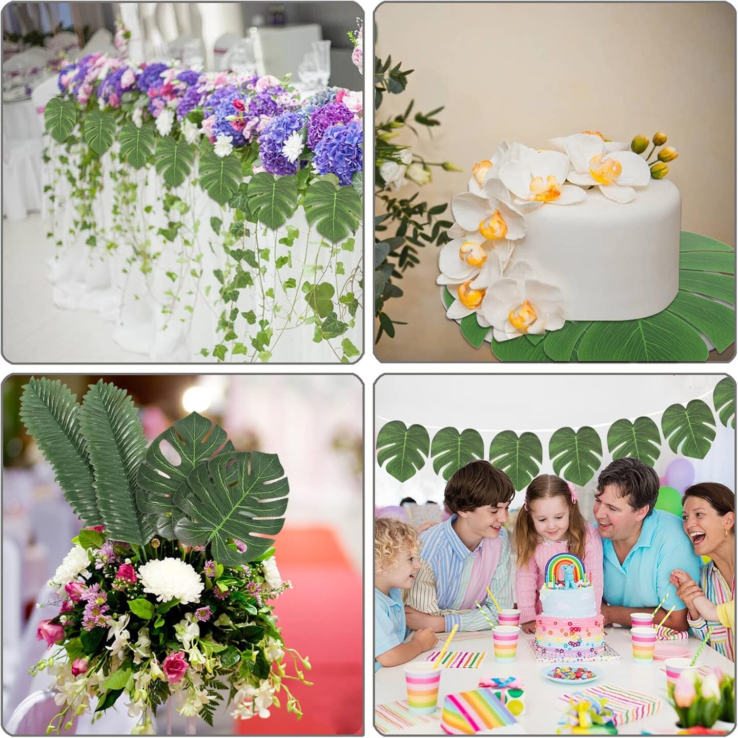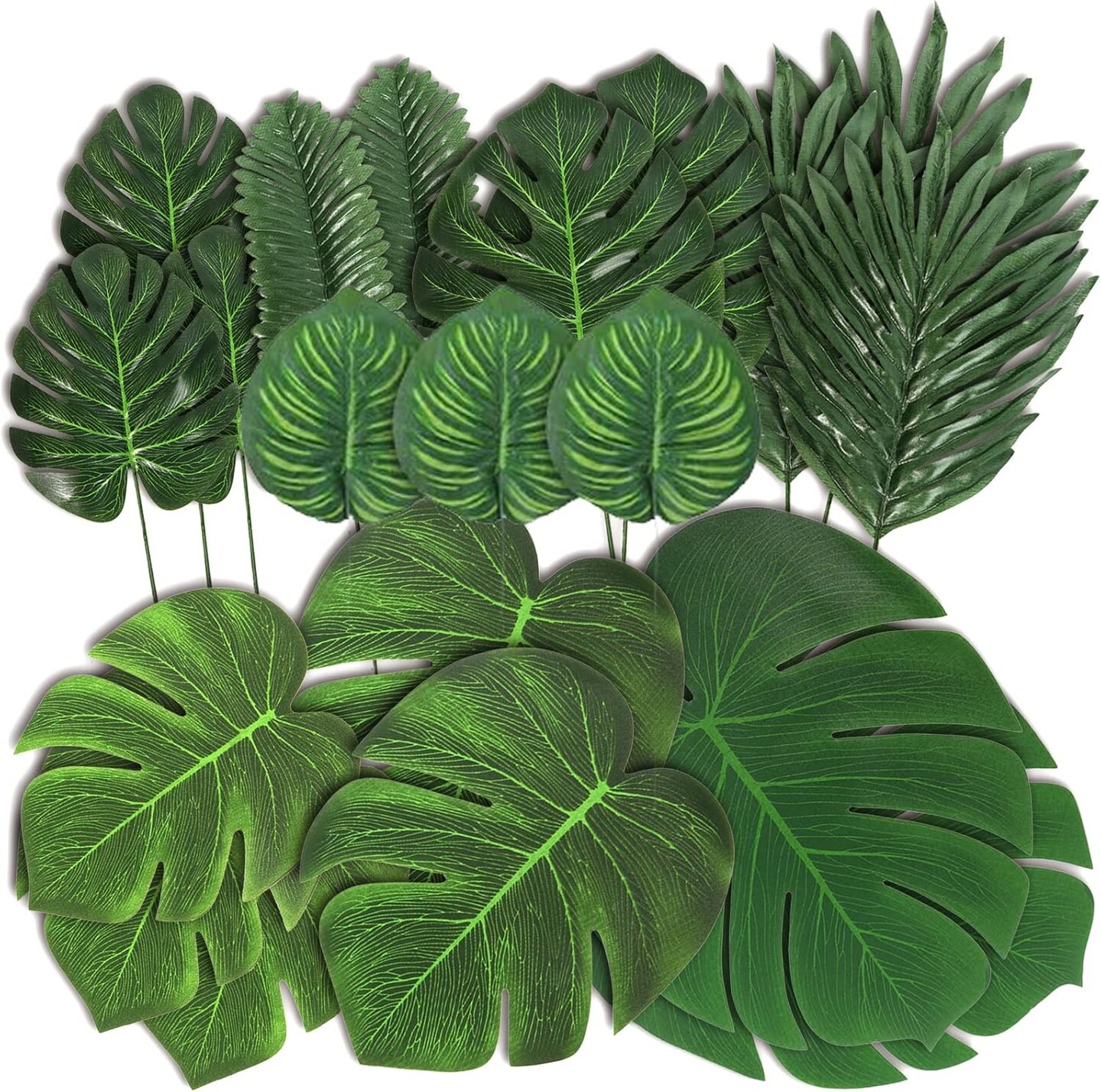 78 Pieces 7 Kinds Artificial Tropical Leaf Jungle Leaves Plant Safari Leaves Decorations for Hawaiian Party Decorations Beach Birthday Luau Party Decorations