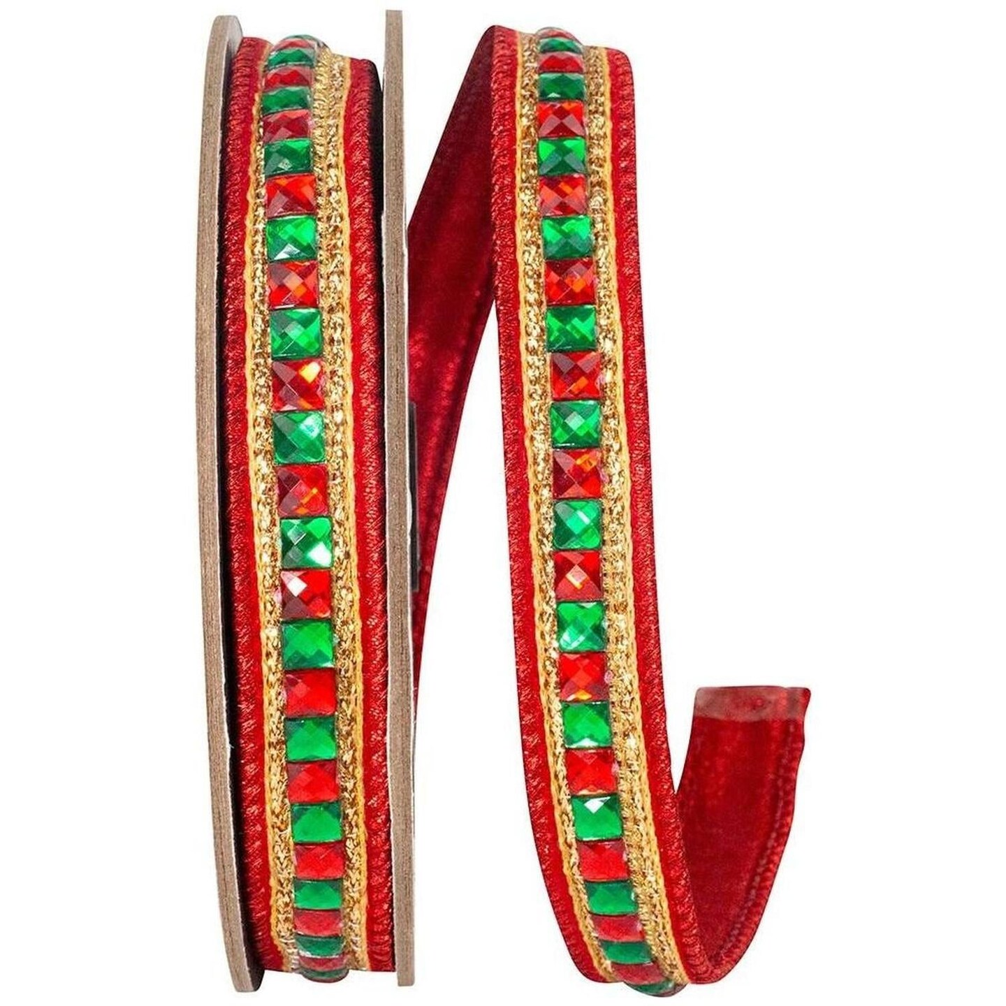 7/8" Sumptuous Jewel Accent Ribbon: Red/Green (5 Yards)