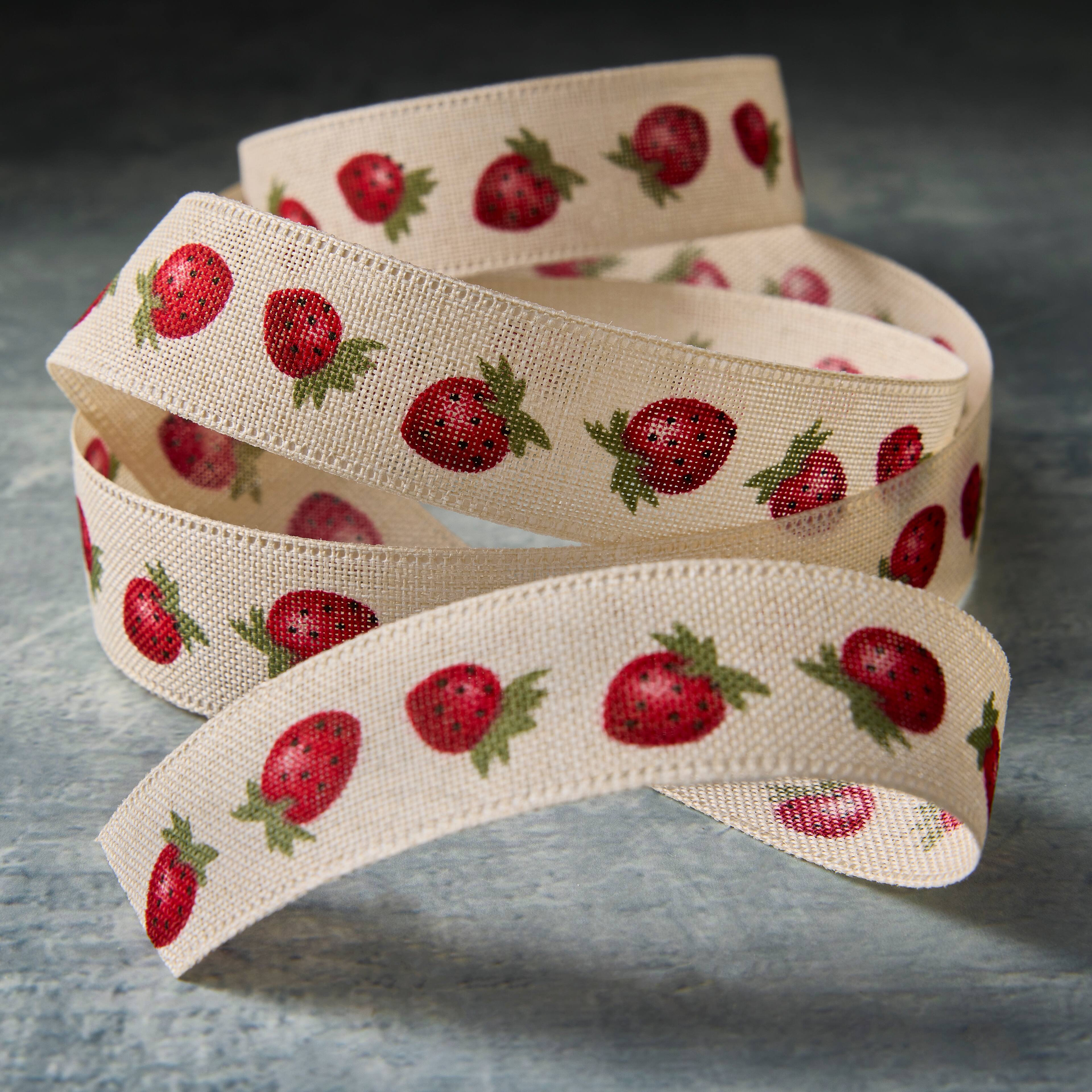7/8" x 5yd. Faux Linen Red Strawberry Ribbon by Celebrate It® Classic