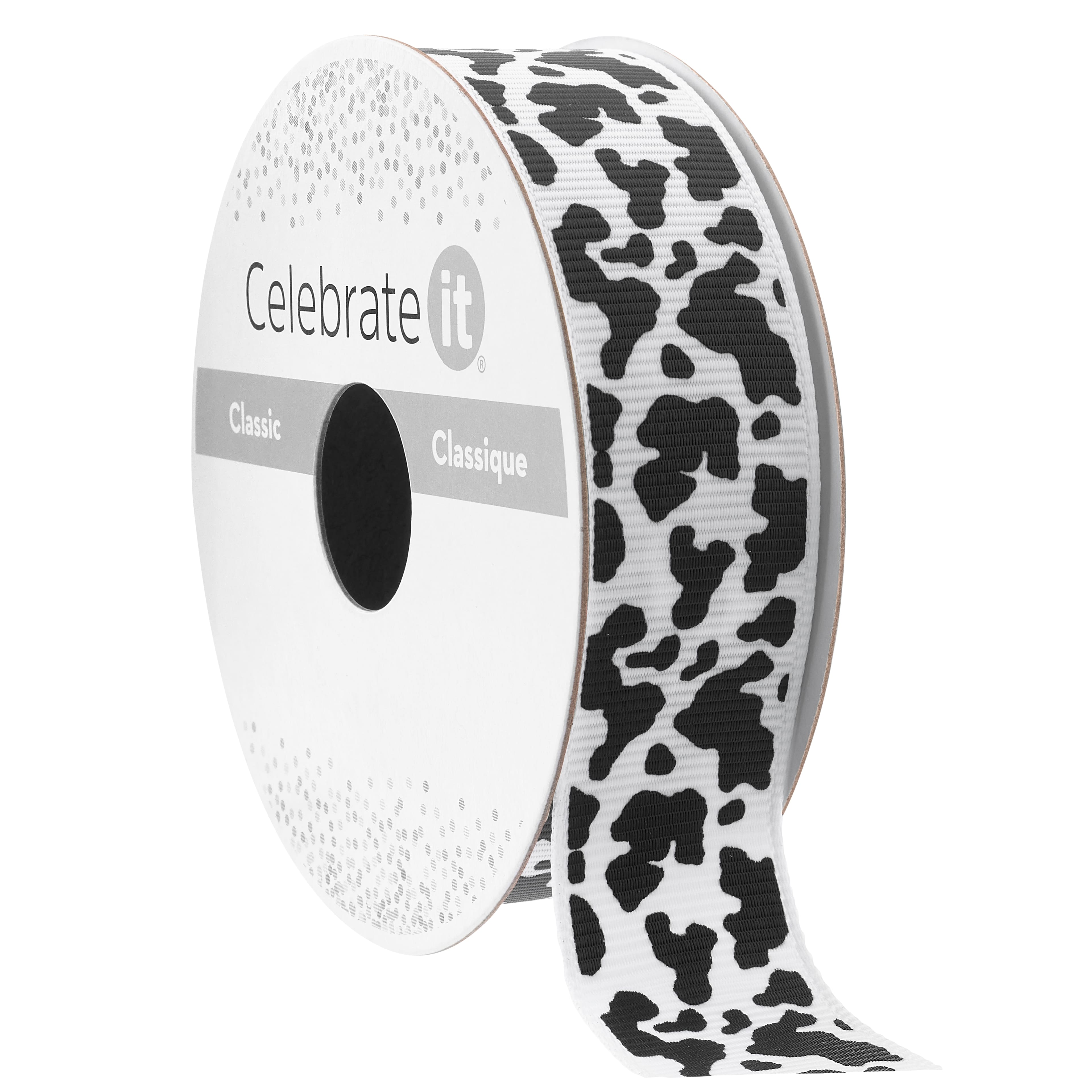 7/8" x 7yd. Black & White Cow Print Ribbon by Celebrate It® Classic