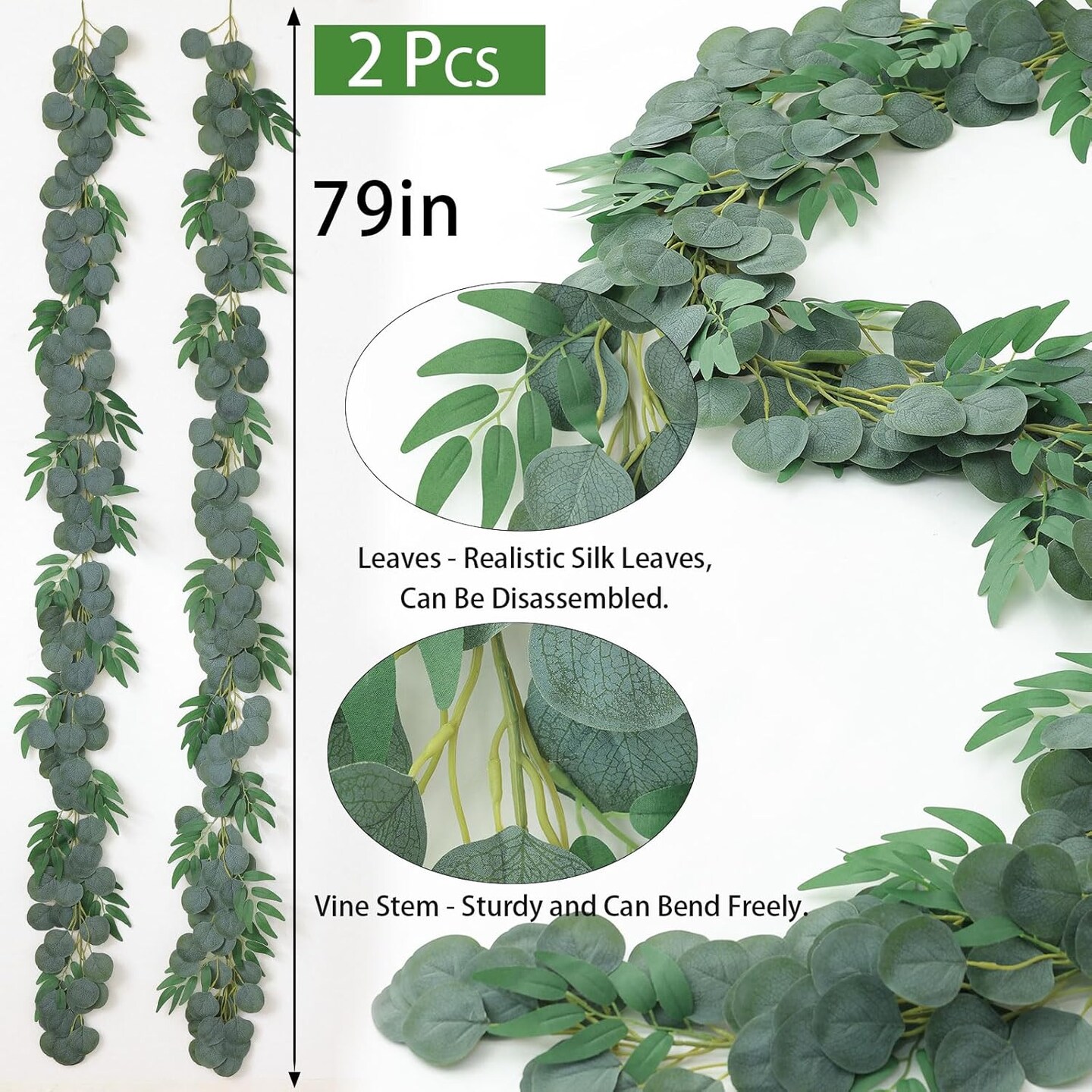 79 Inches - 2 Artificial Vines Garland Hanging Plants Greenery Decoration (Eucalyptus)