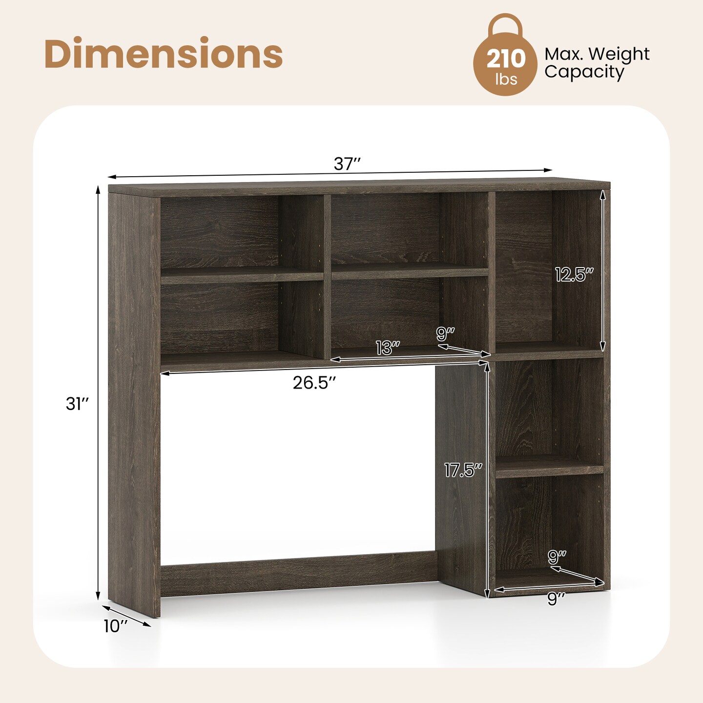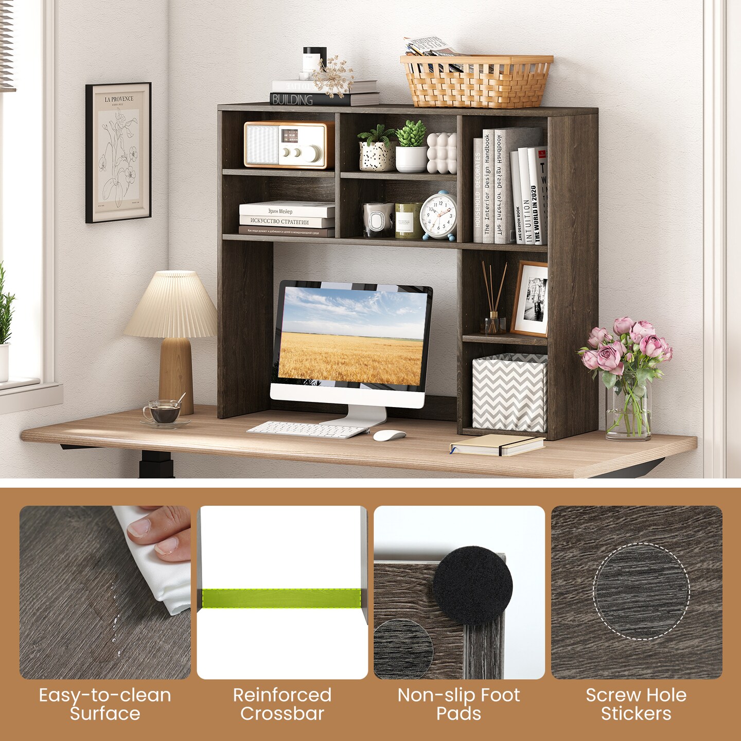 7-Cubby Desktop Bookshelf with Adjustable Shelves for Books and Office Supplies