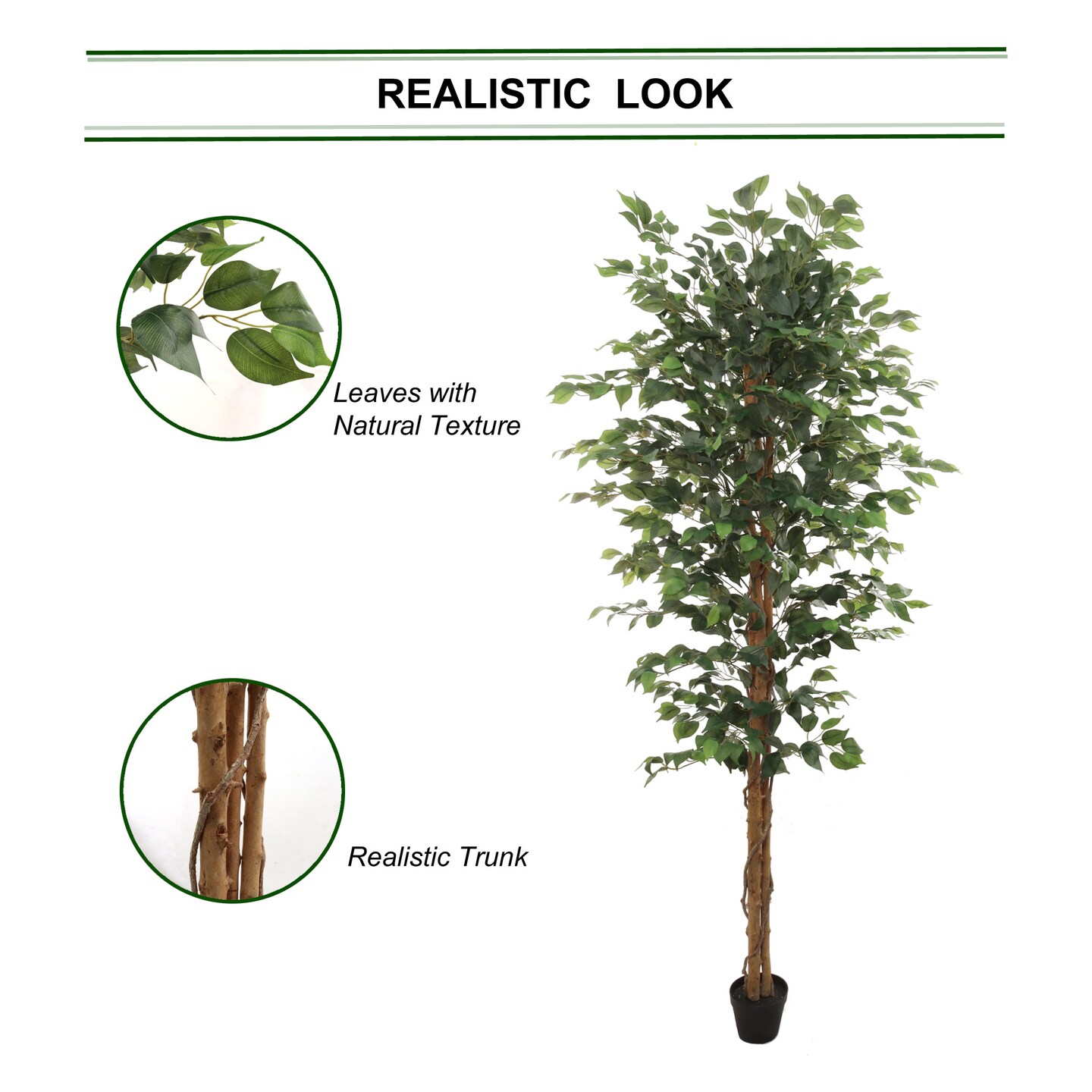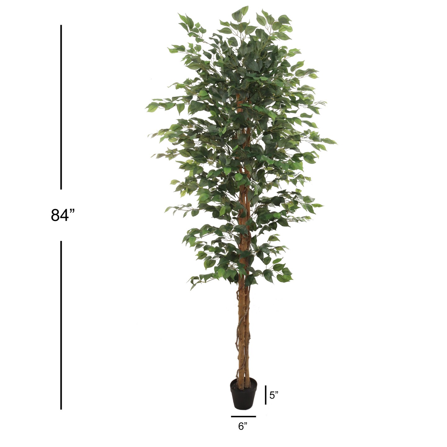 7ft Ficus Tree in Black Pot with 1260 Silk Leaves for Home & Office Décor - Floral Home by Artificial Flowers