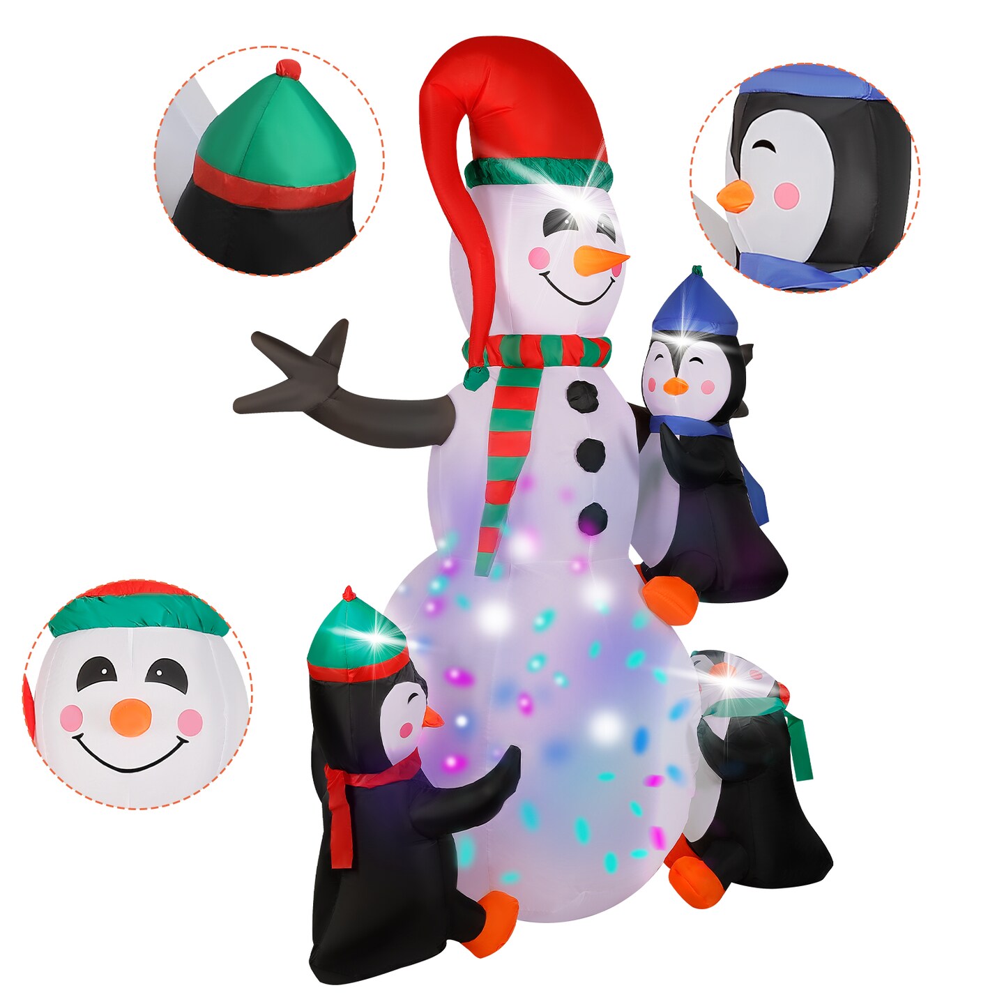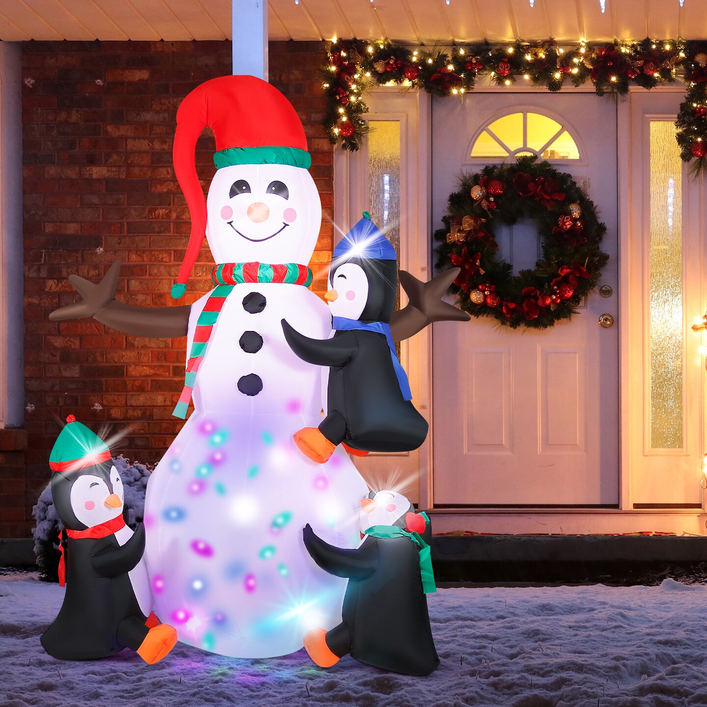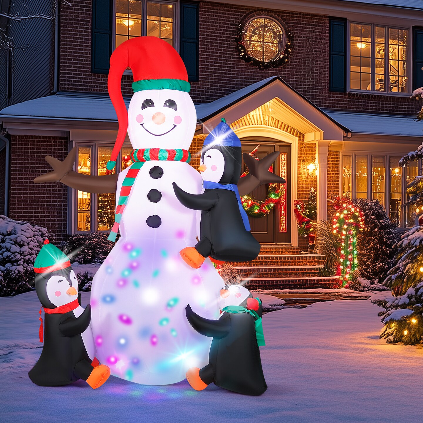 7ft Inflatable Snowman with 3 Penguin Friends – Colorful LED Light Show, Outdoor Christmas Yard Decor for Winter Festivities