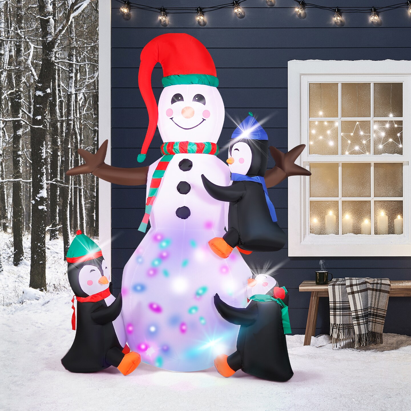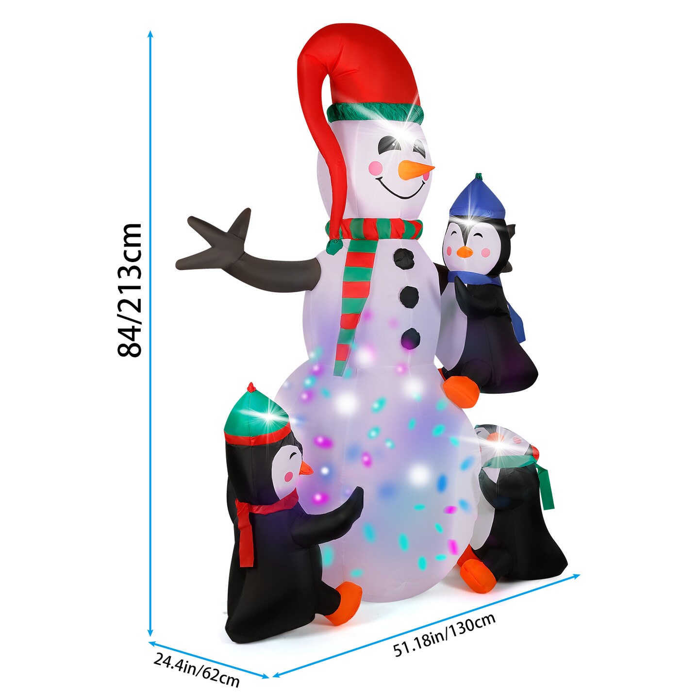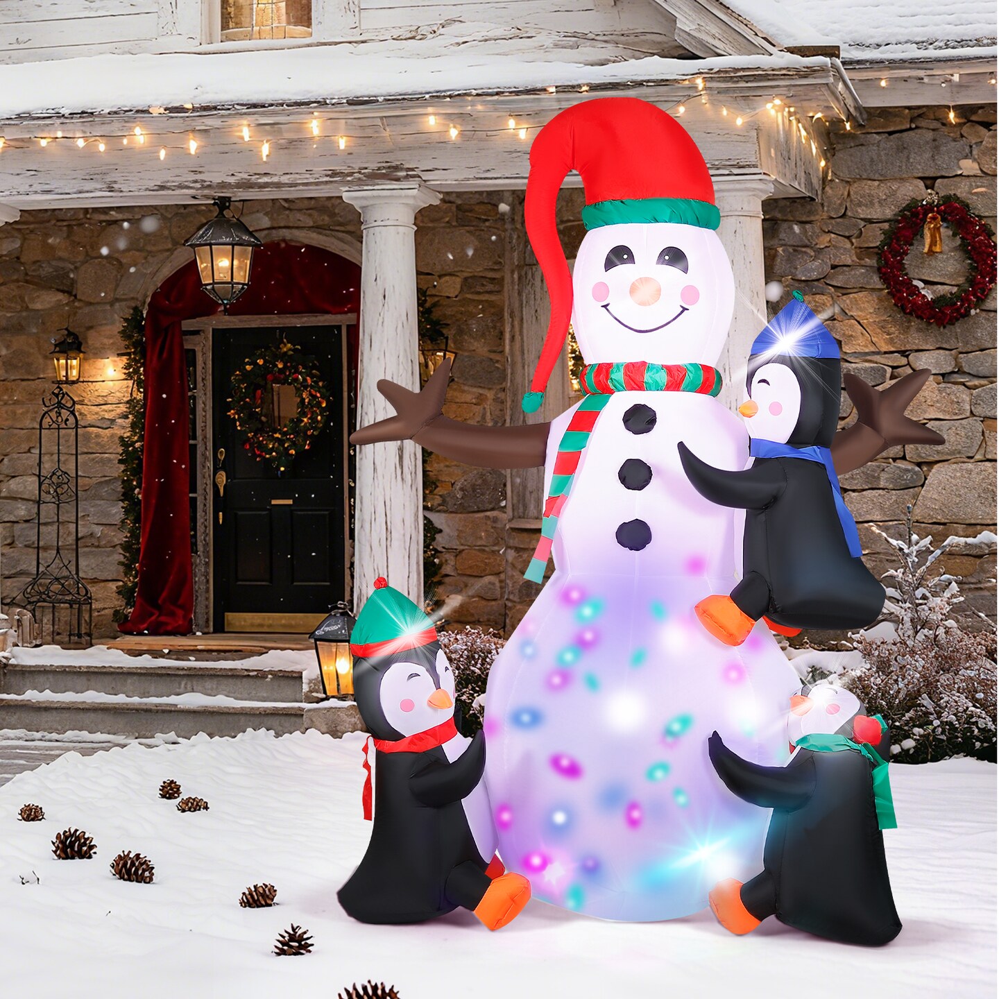 7ft Inflatable Snowman with 3 Penguin Friends – Colorful LED Light Show, Outdoor Christmas Yard Decor for Winter Festivities