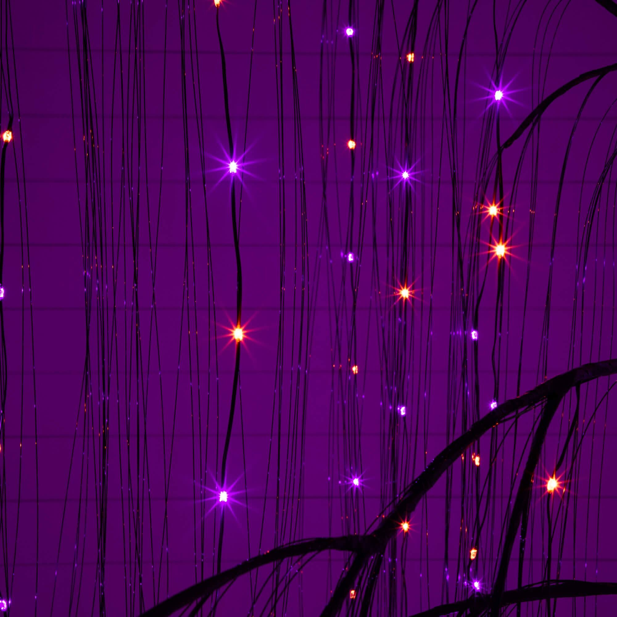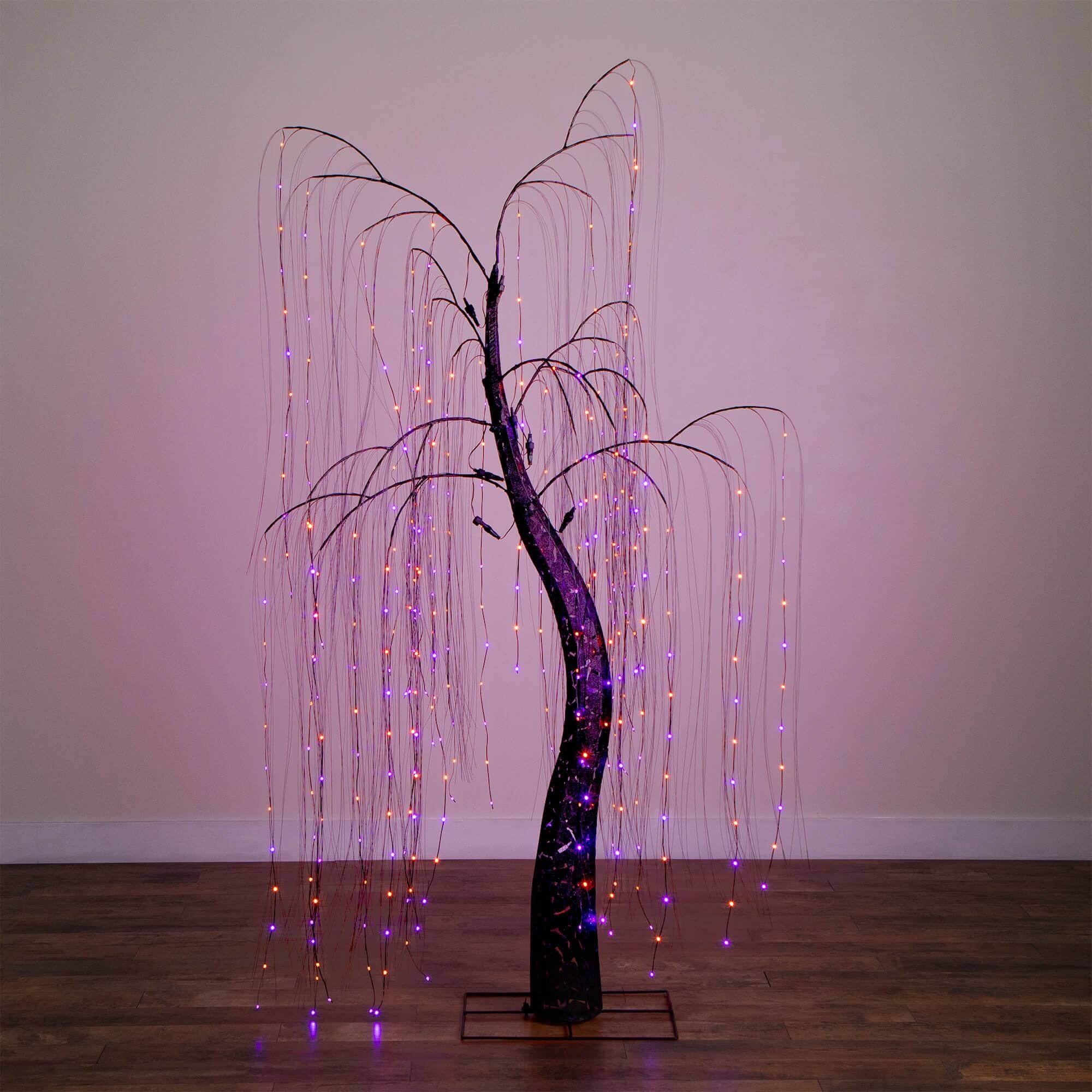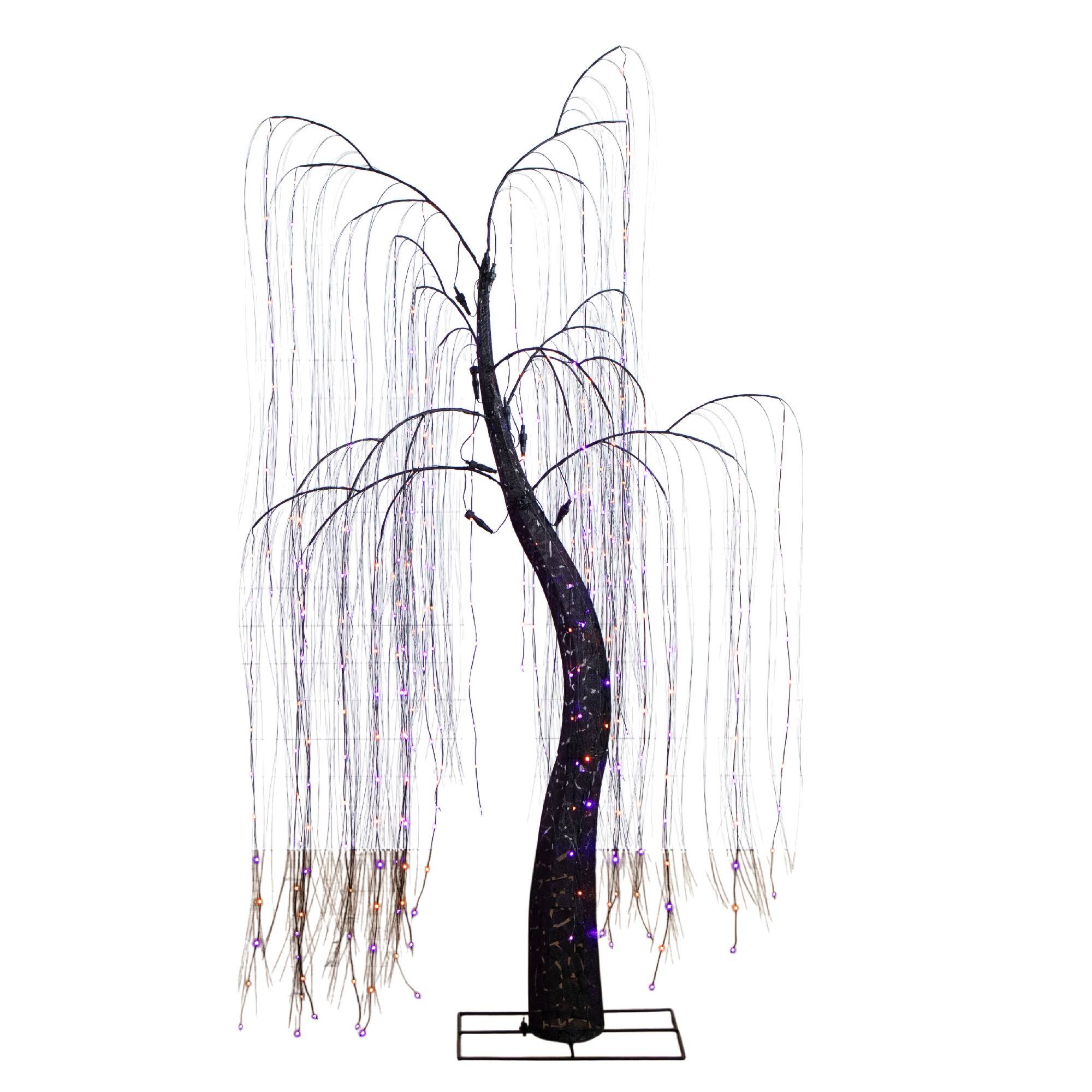 7ft. Pre-Lit Artificial Halloween Black Willow Tree with 600 Purple and Orange Dual Color LED Lights