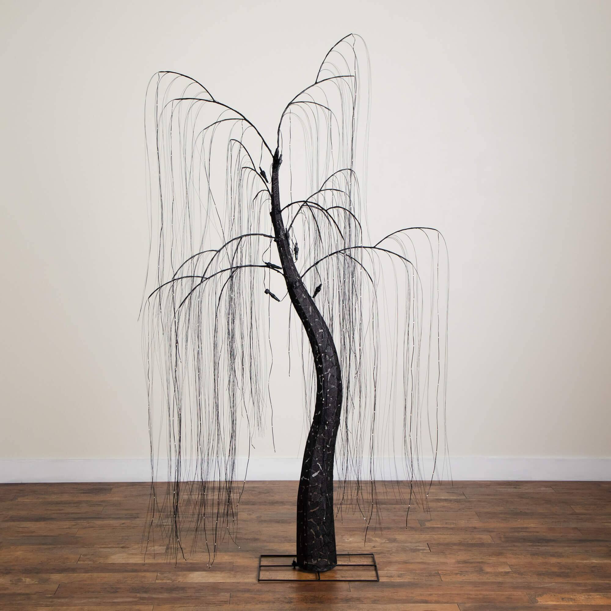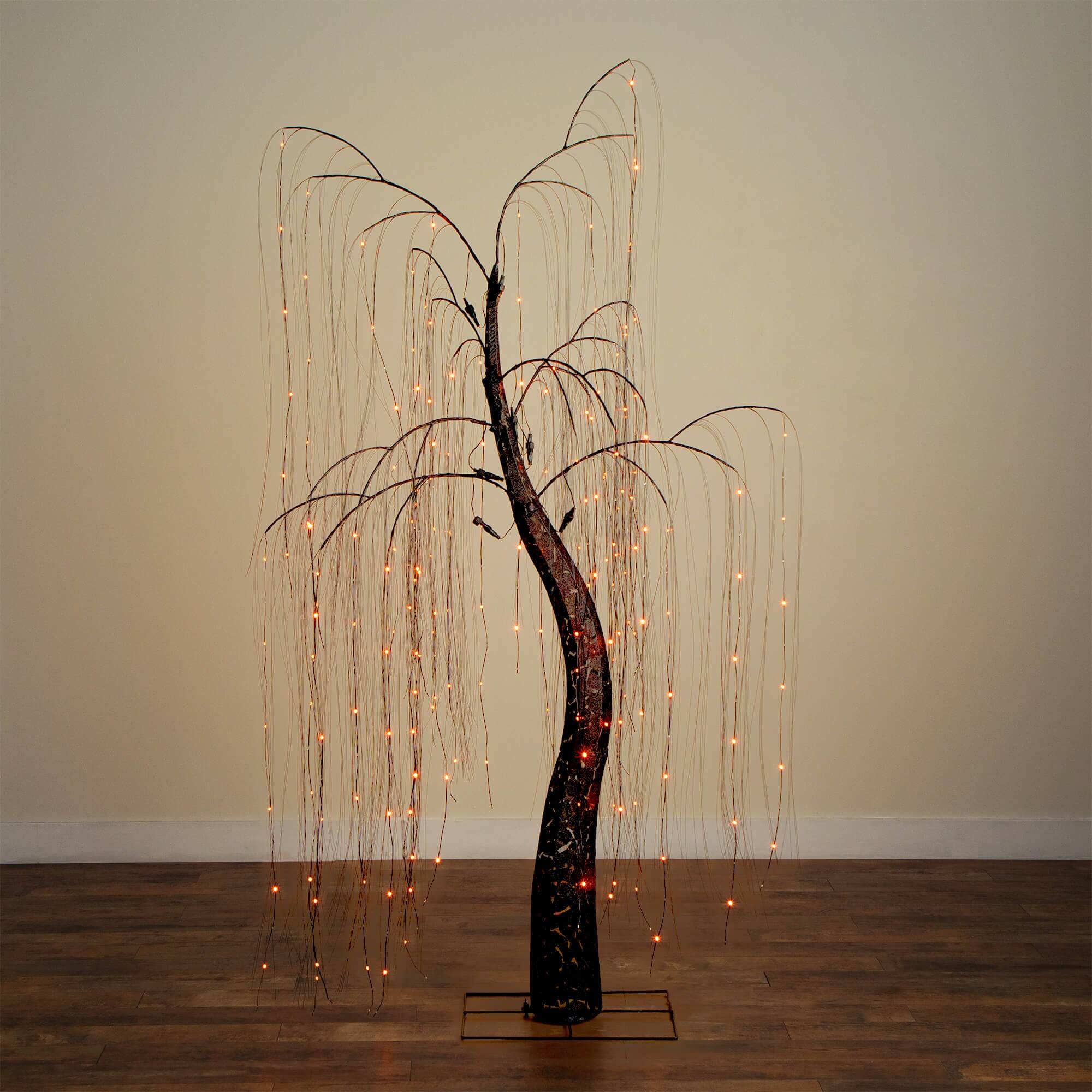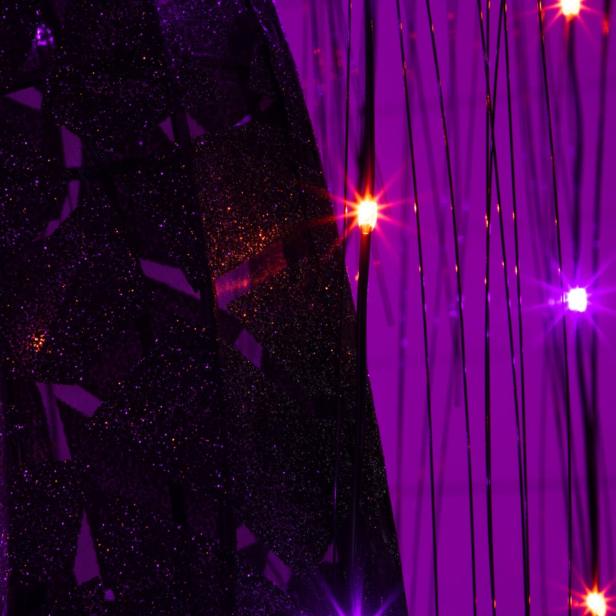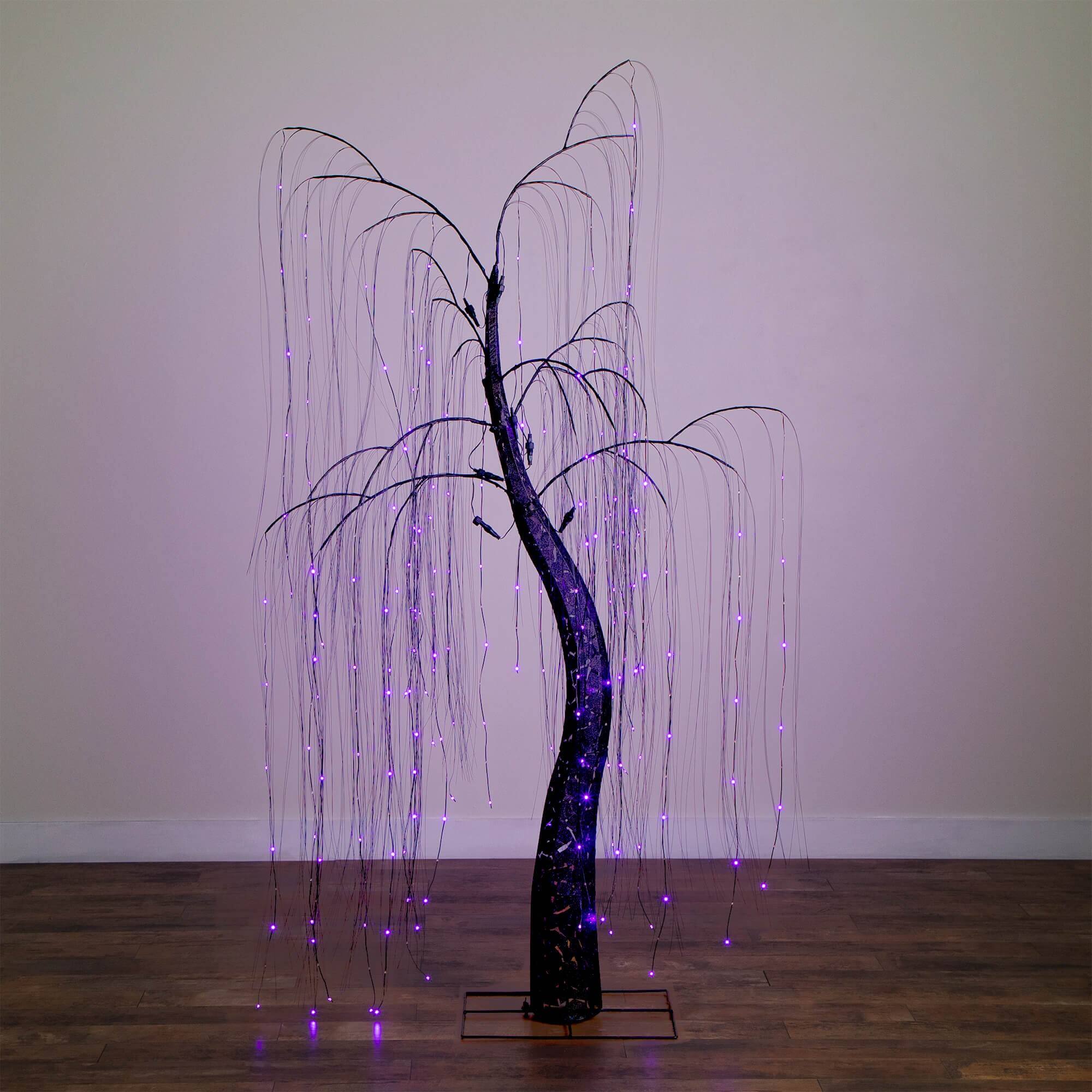7ft. Pre-Lit Artificial Halloween Black Willow Tree with 600 Purple and Orange Dual Color LED Lights