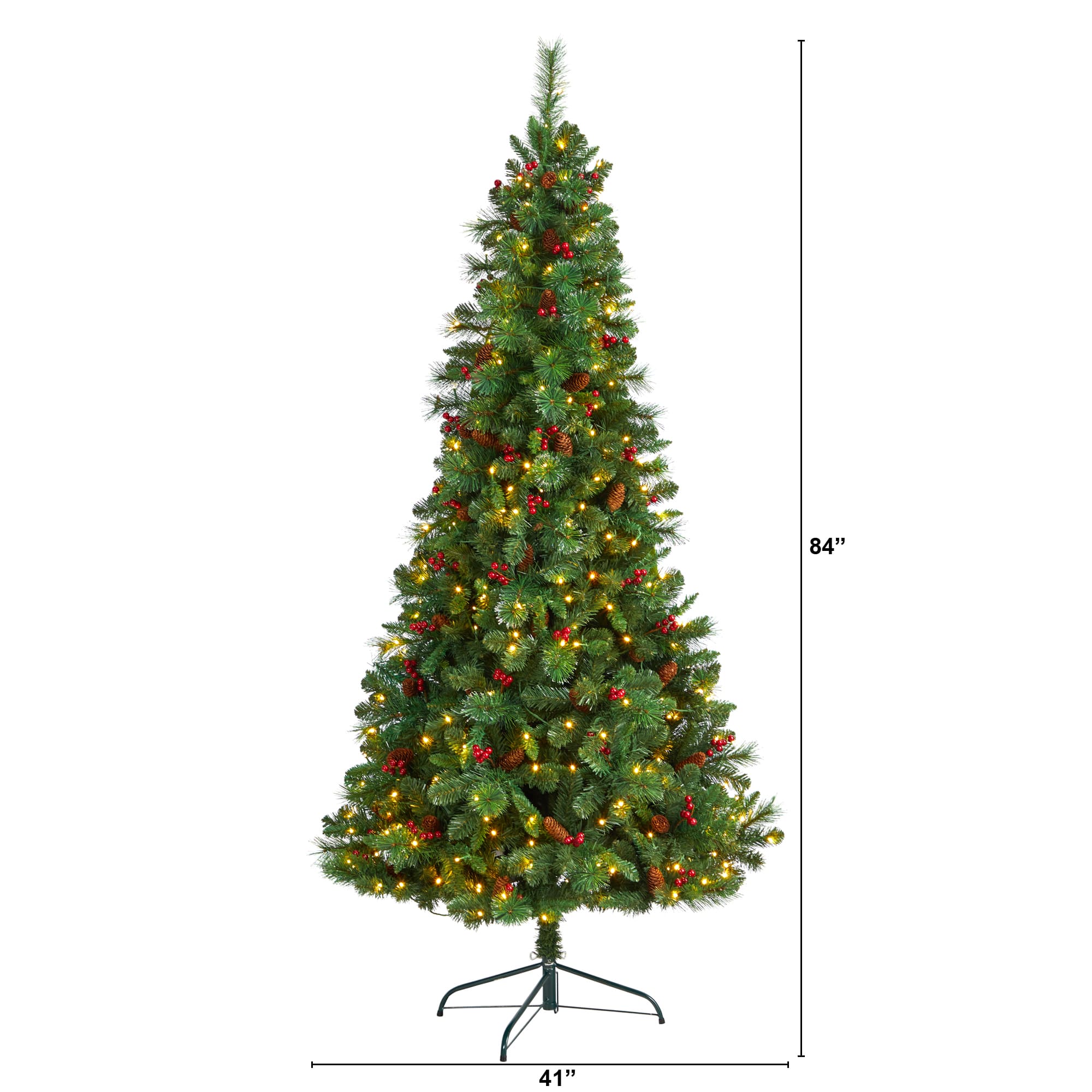 7ft. Pre-Lit Flat Back Montreal Mountain Pine Artificial Christmas Tree, White LED Lights