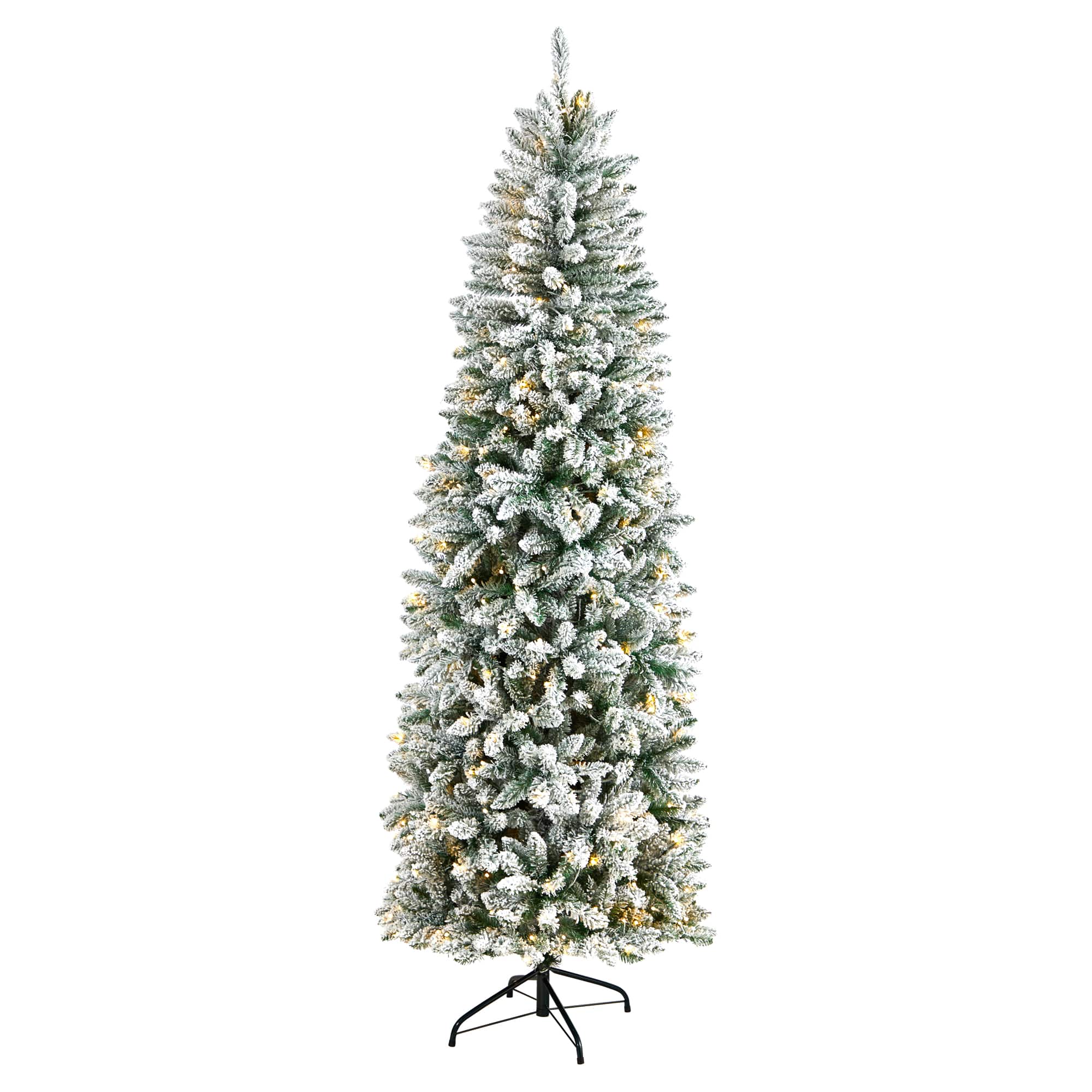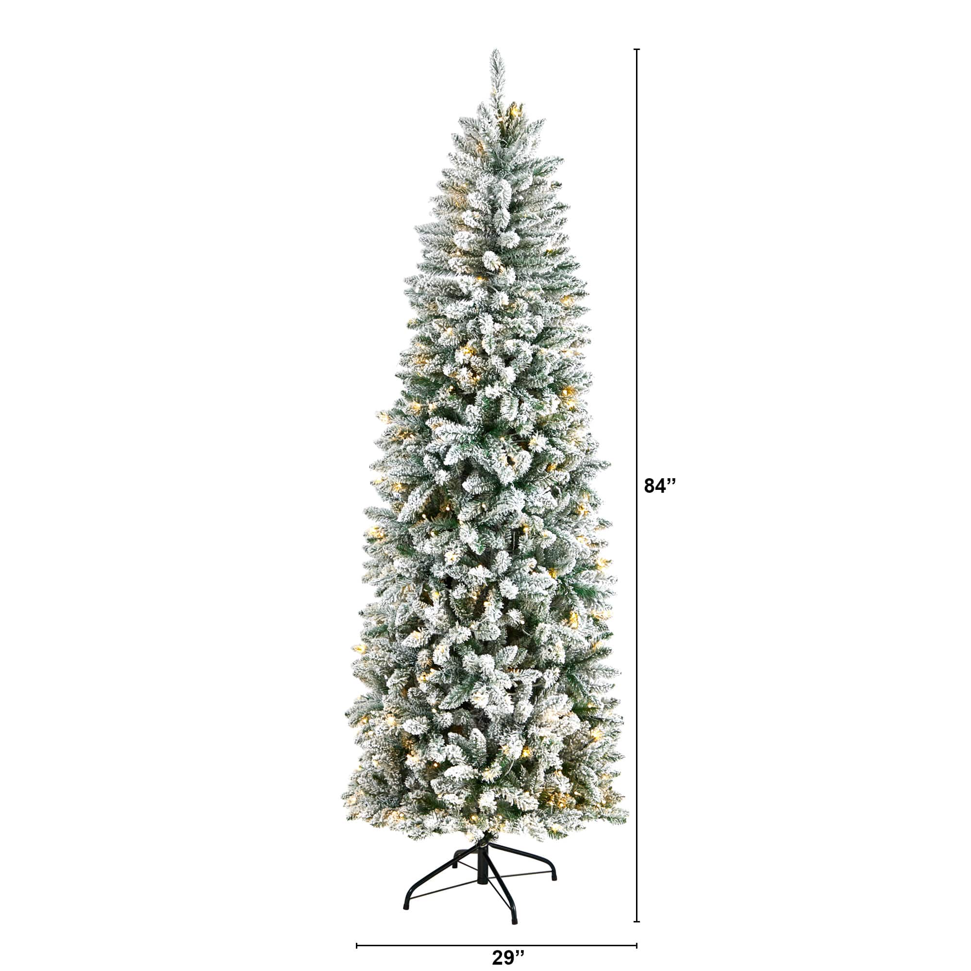 7ft. Pre-Lit Flocked Montreal Fir Artificial Christmas Tree, Warm White LED Lights
