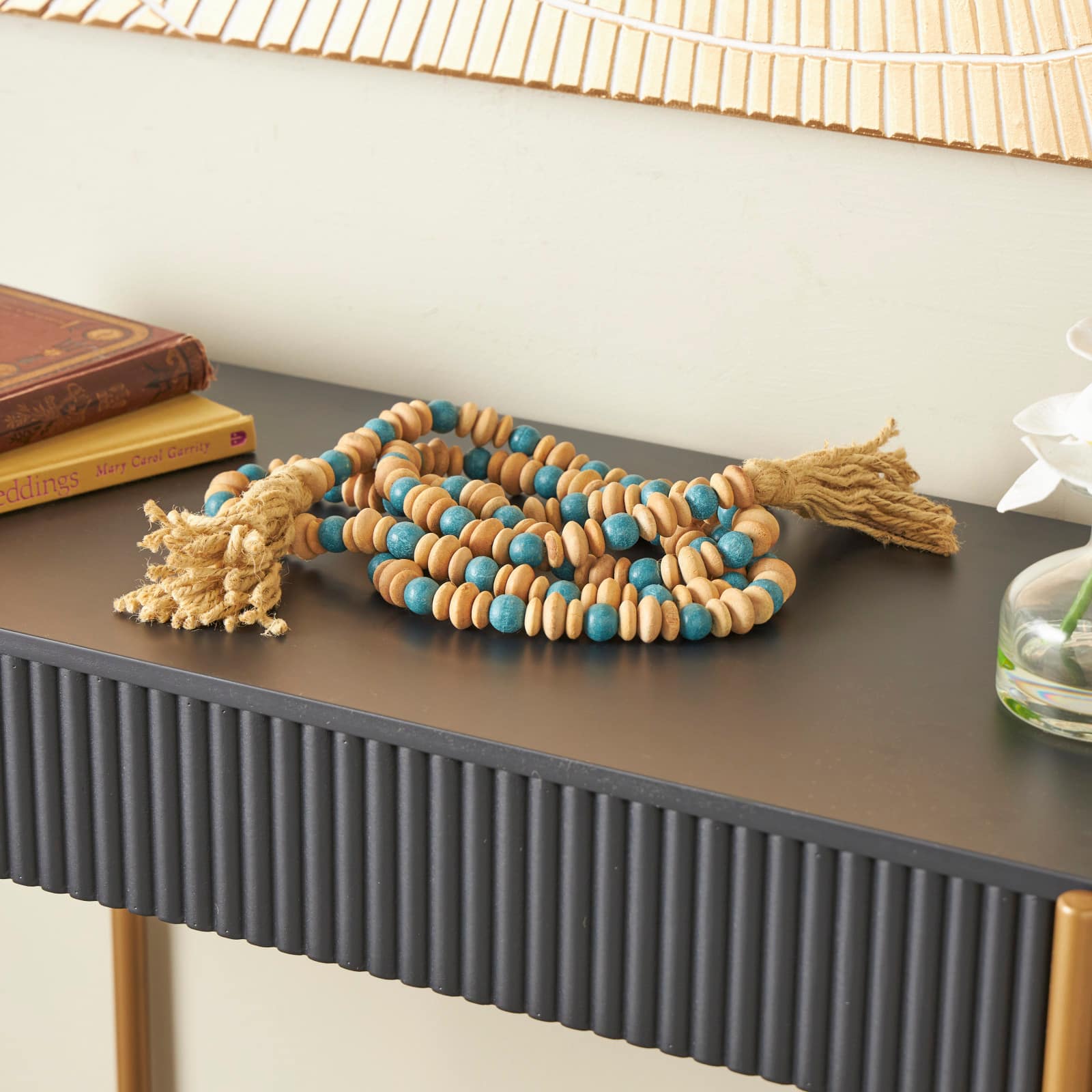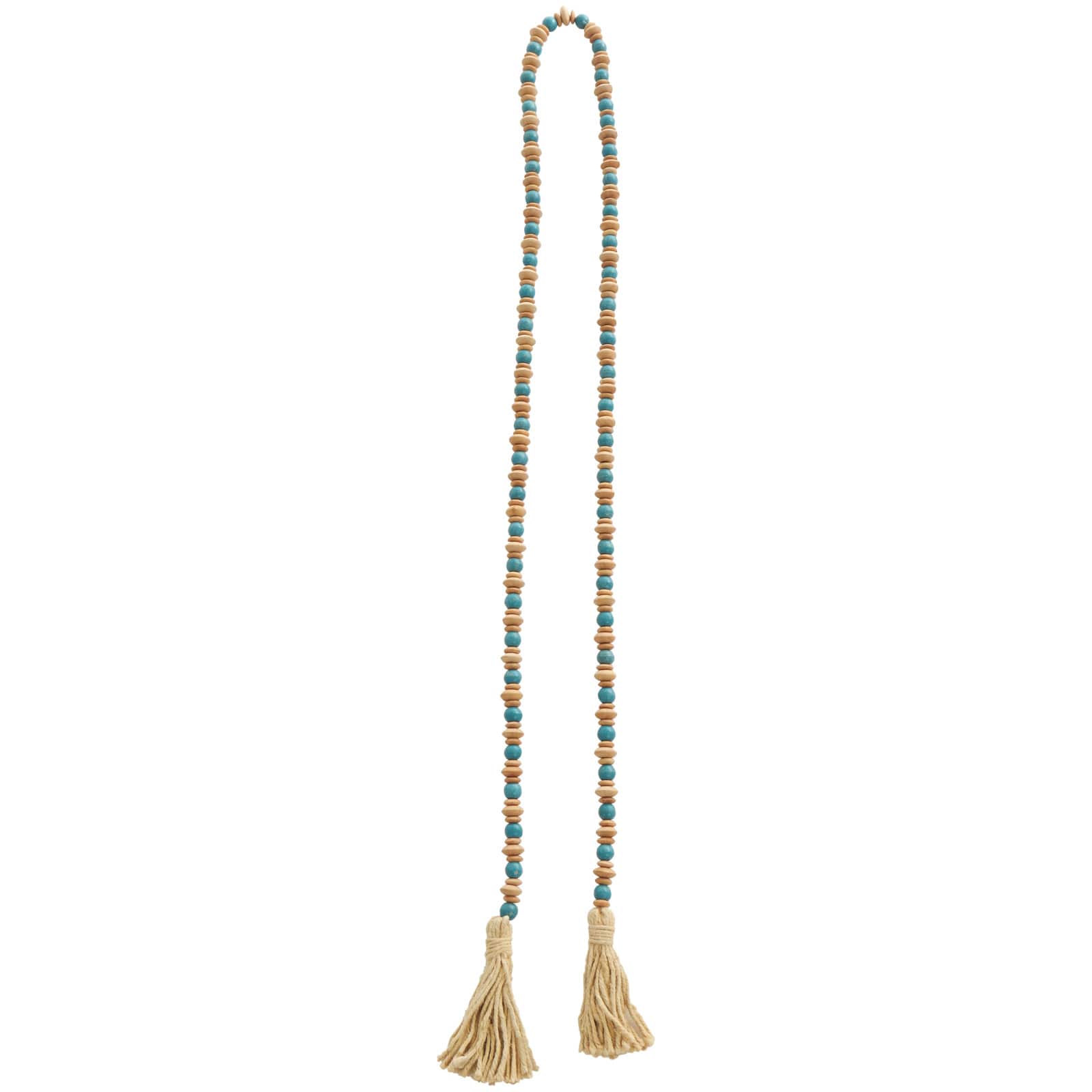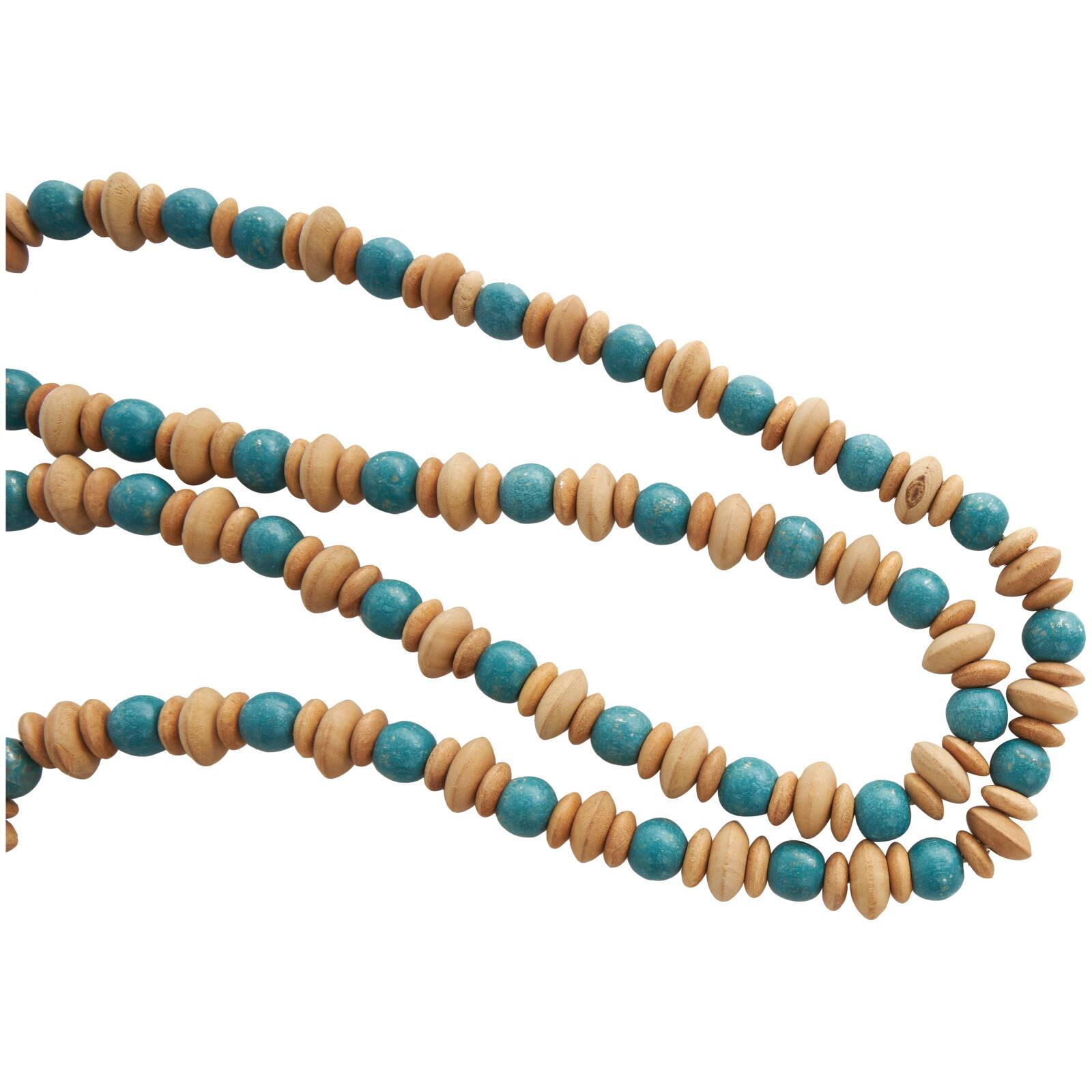 7ft. Teal Mango Wood Handmade Round Long Carved Beaded Garland with Tassel