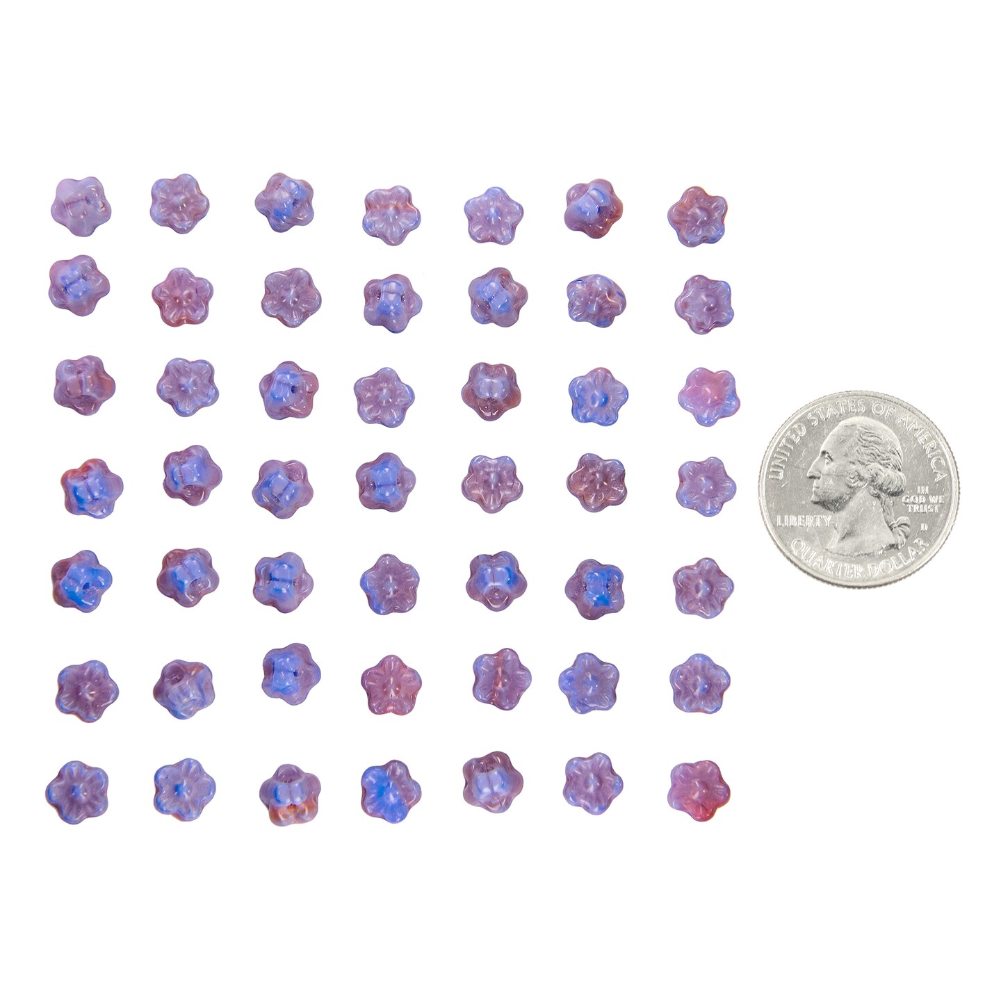 7mm Cornflower Blue and Pink Button Style Flower Beads Apx 48-50 Beads GB-BB06
