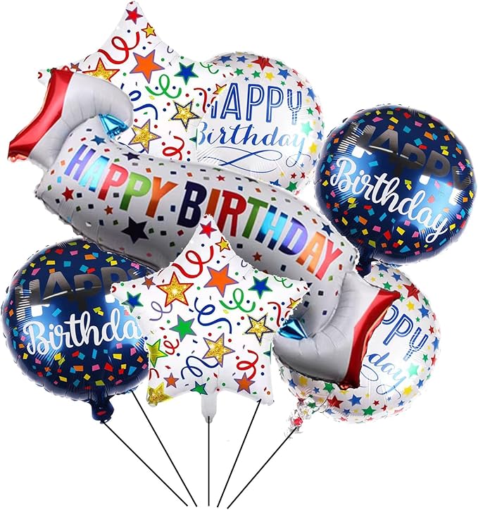 7Pieces Happy Birthday Banner Foil Balloon Set 18inch Star and Circle Mylar Foil Balloon for Kids & Adults Birthday Decorations and Party Supplies Favor