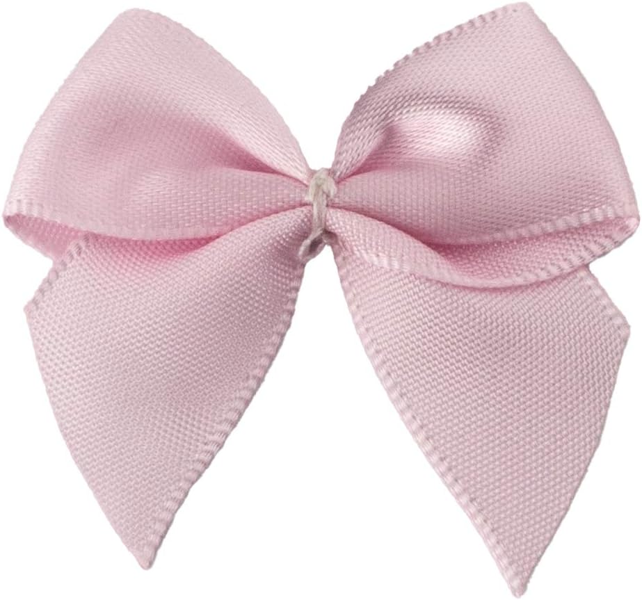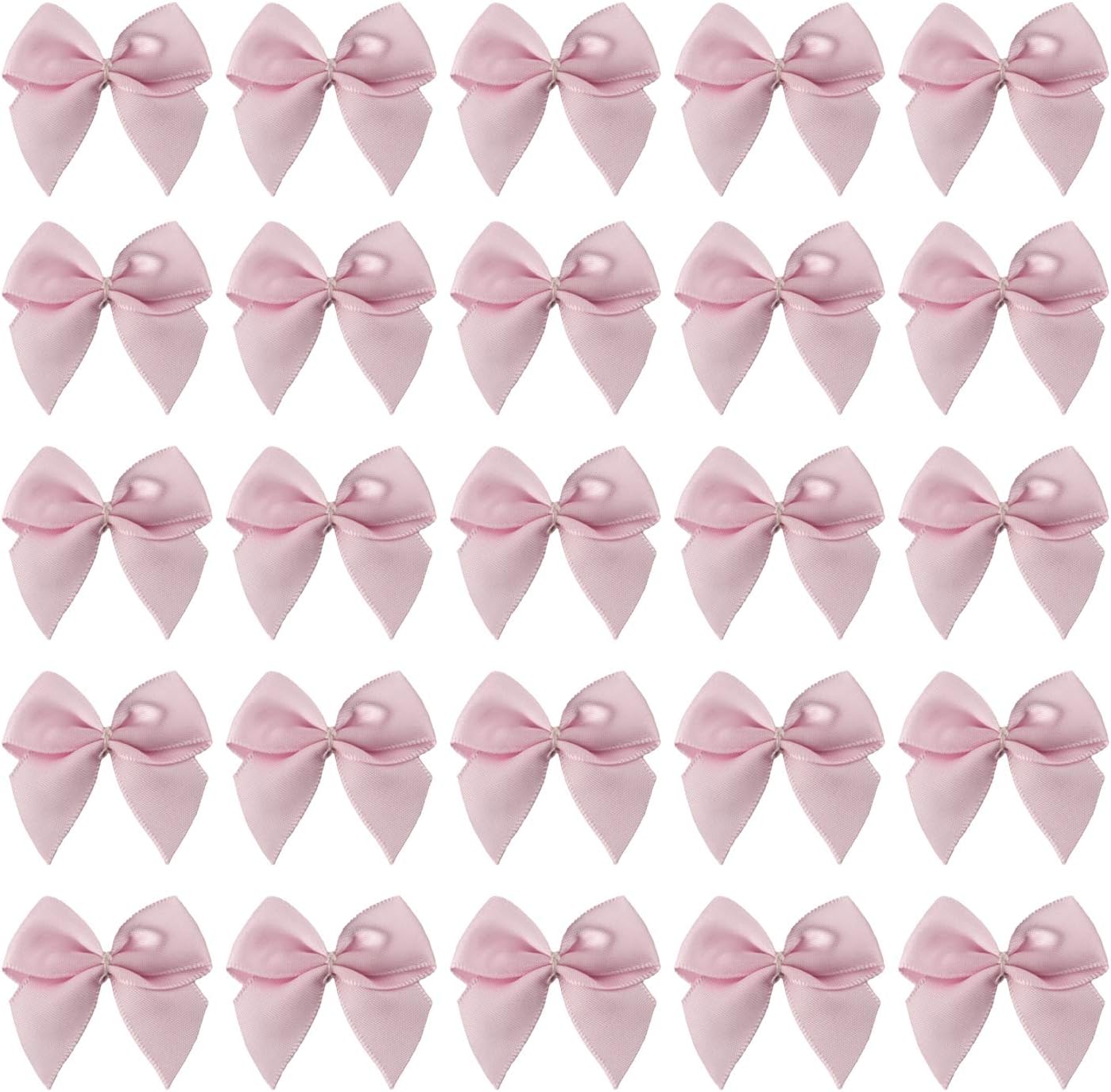 7Rainbows 50pcs 5/8" Boutique Mini Pink Satin Ribbon Bows Flowers Appliques DIY Craft for Sewing Scrapbooking Wedding and Gift
