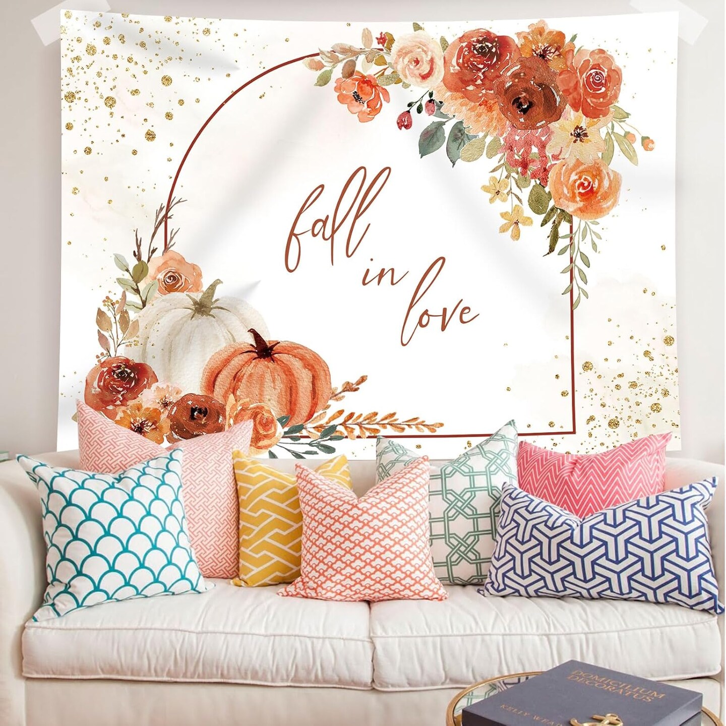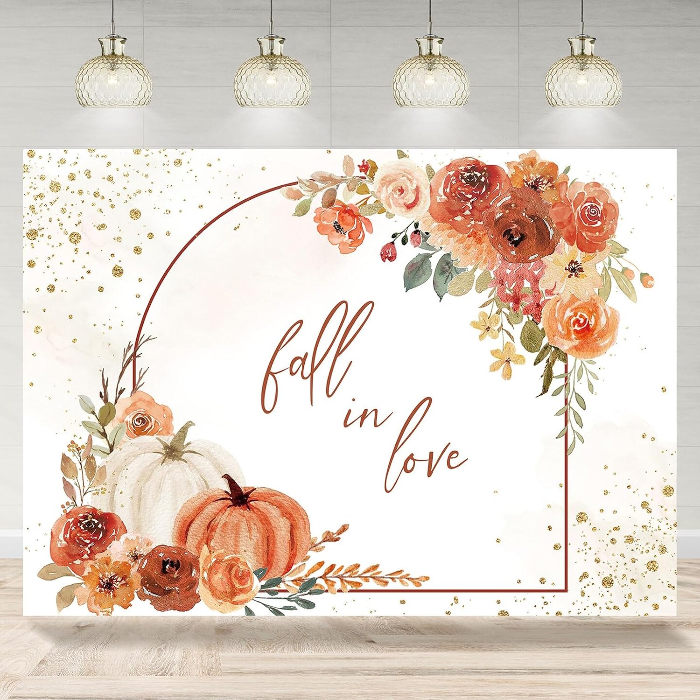 7x5ft Fall in Love Backdrop Pumpkin Floral Wedding Bridal