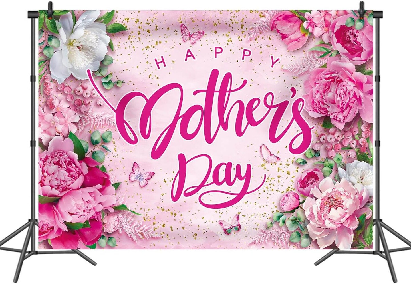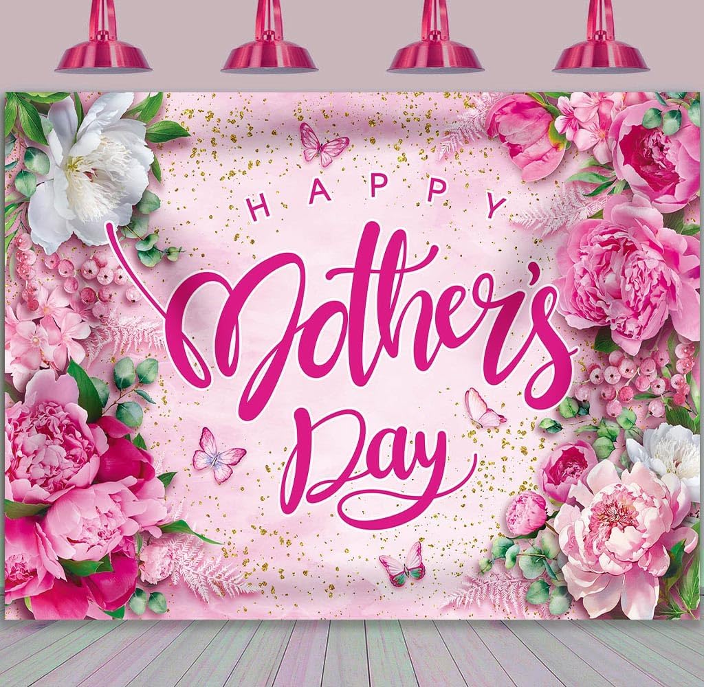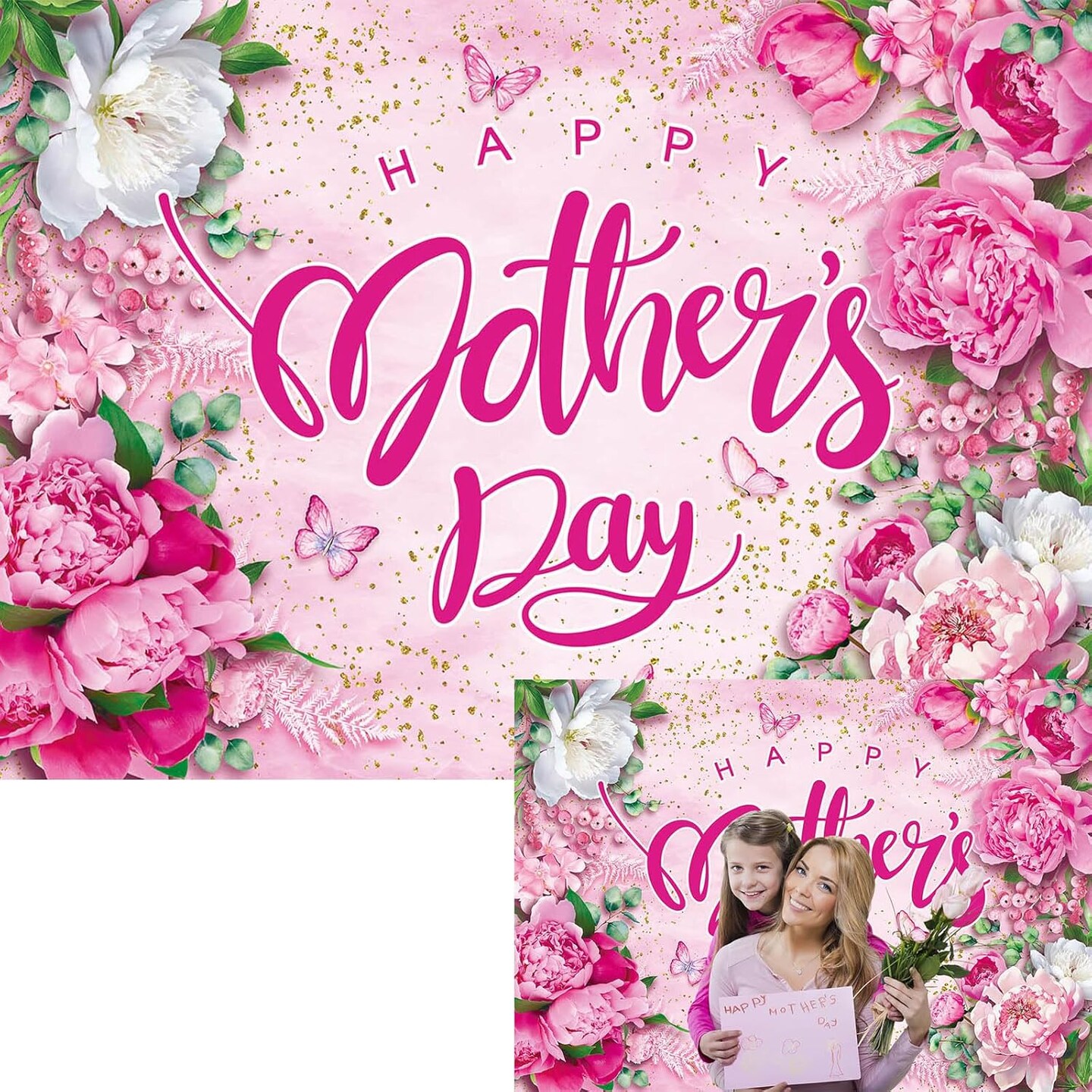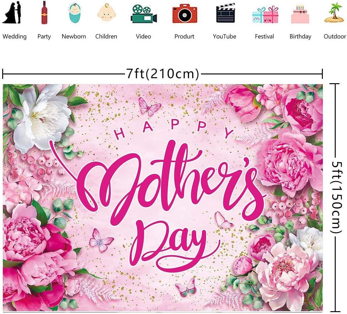 7x5ft Mother’s Day Photography Backdrop – Pink “Thanks Best Mom & Grandma” Event Banner, Floral Party Decoration Background for Photo Booth Props and Celebration Pictures