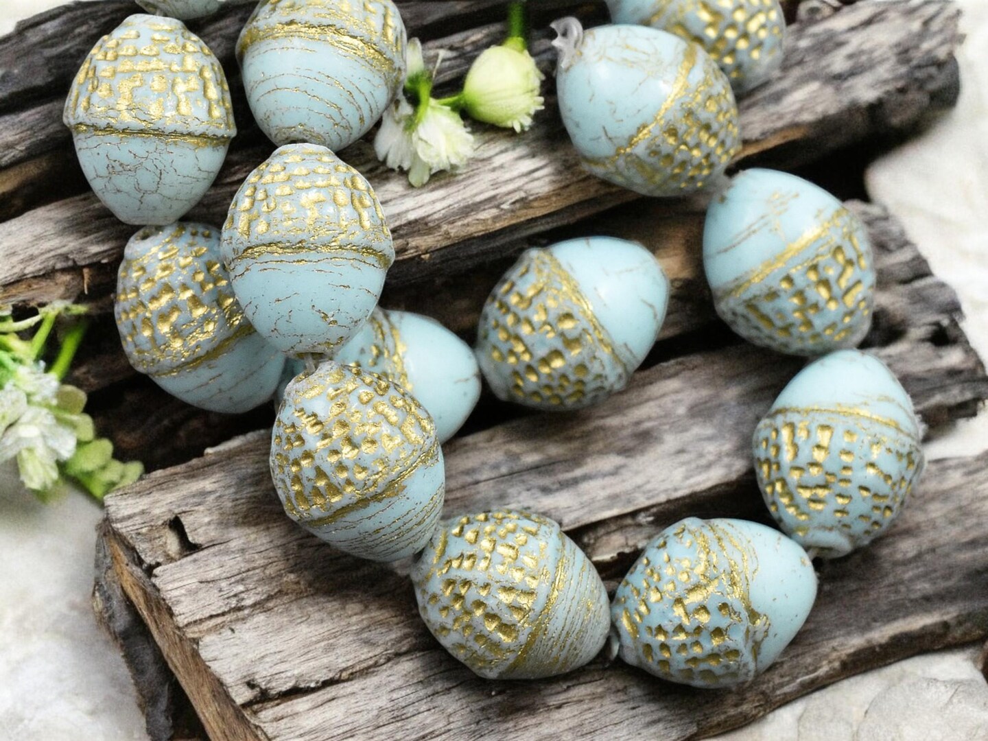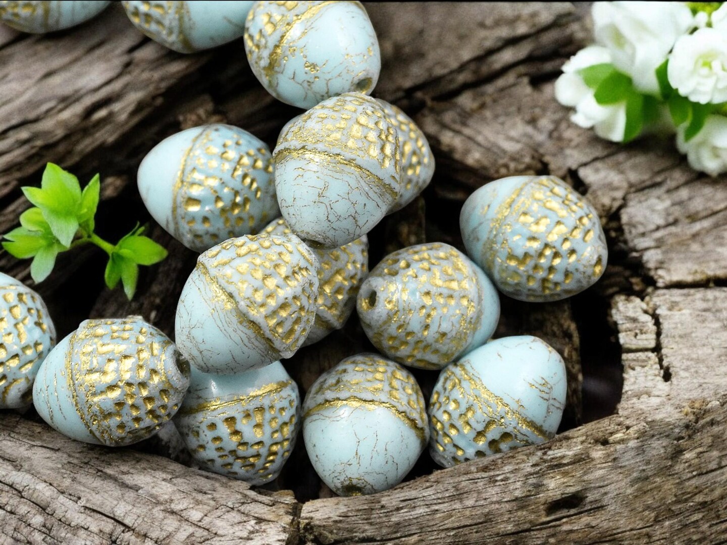 *8* 10x12mm Gold Washed Robins Egg Acorn Oval Beads