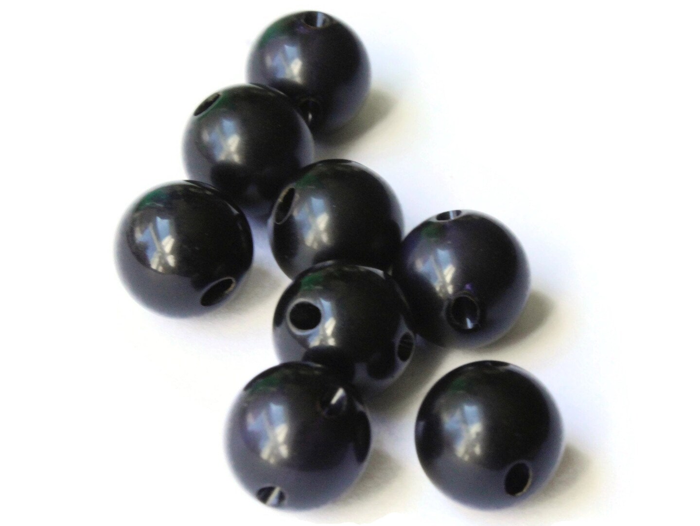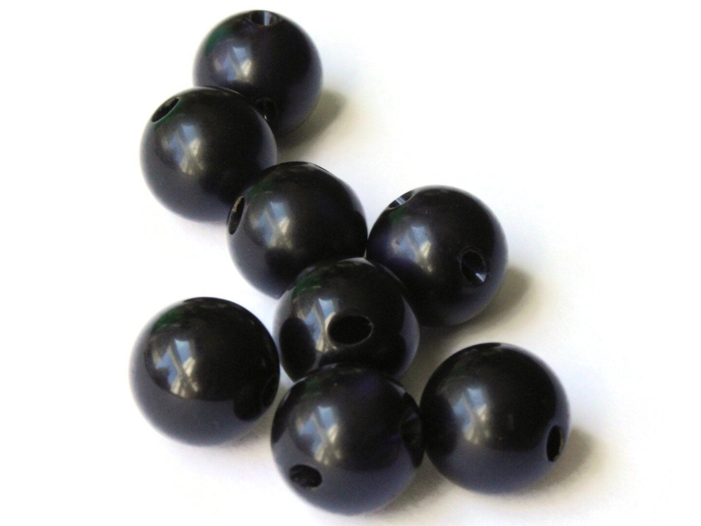 8 12mm 1/2 Inch Black Ball Buttons Vintage Lucite Buttons