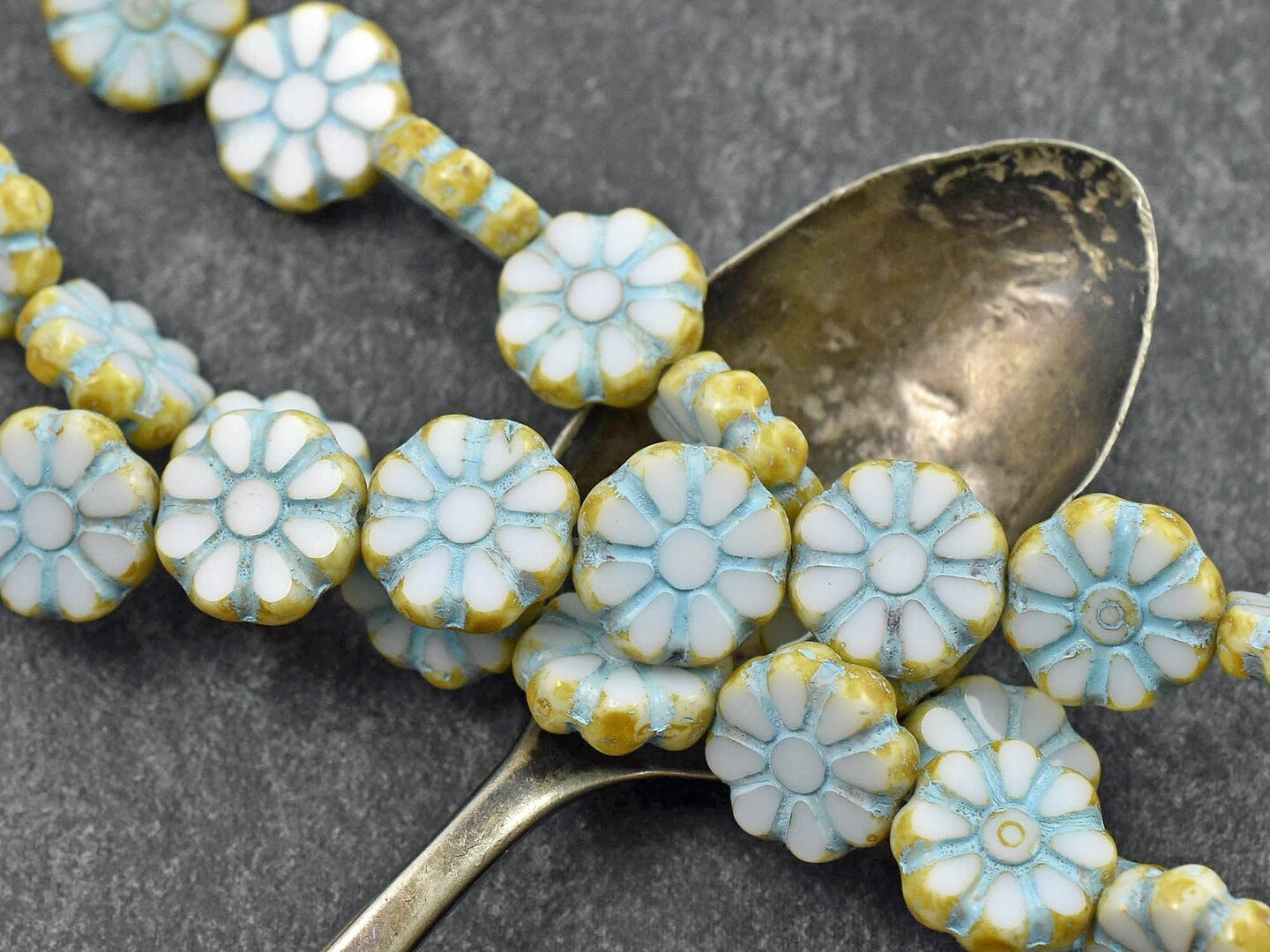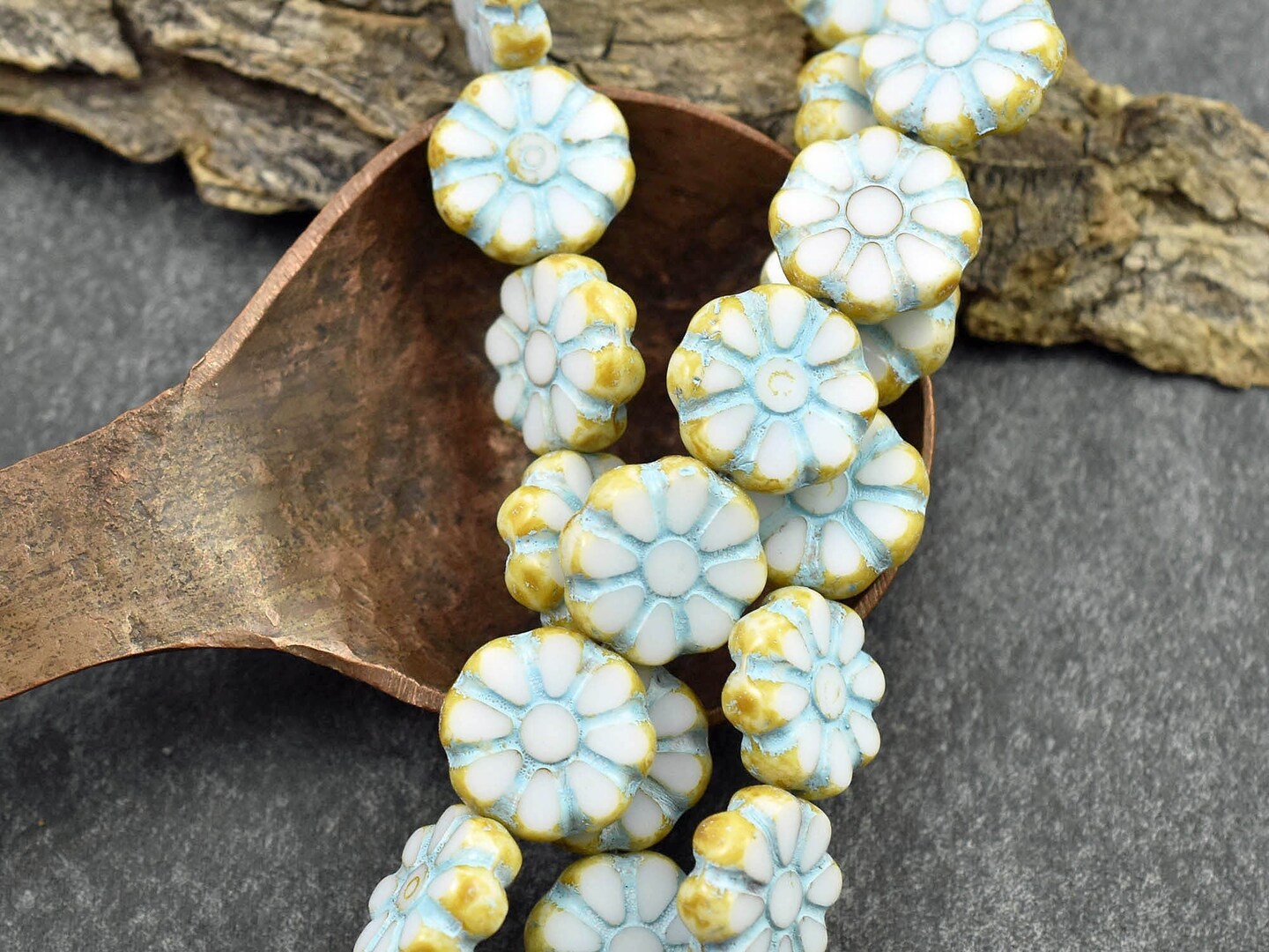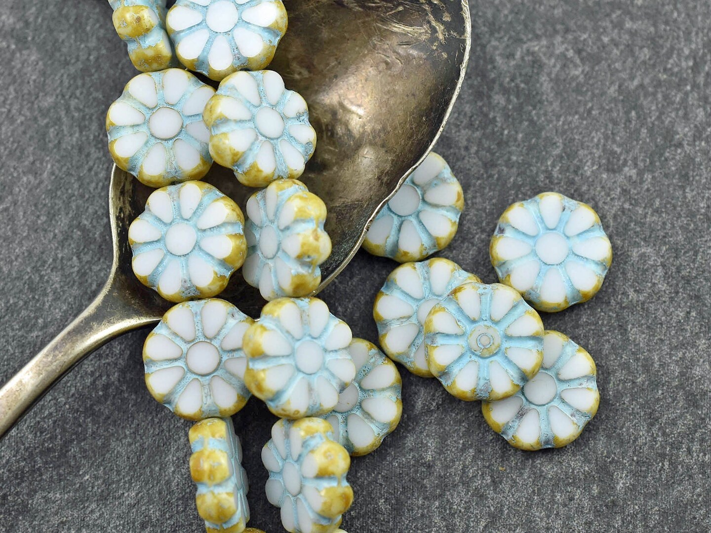 *8* 12mm Turquoise Washed Alabaster Travertine Cosmo Flower Beads