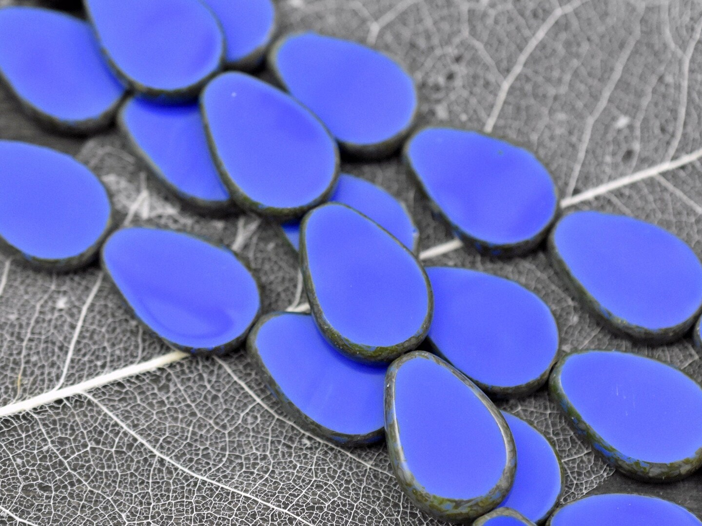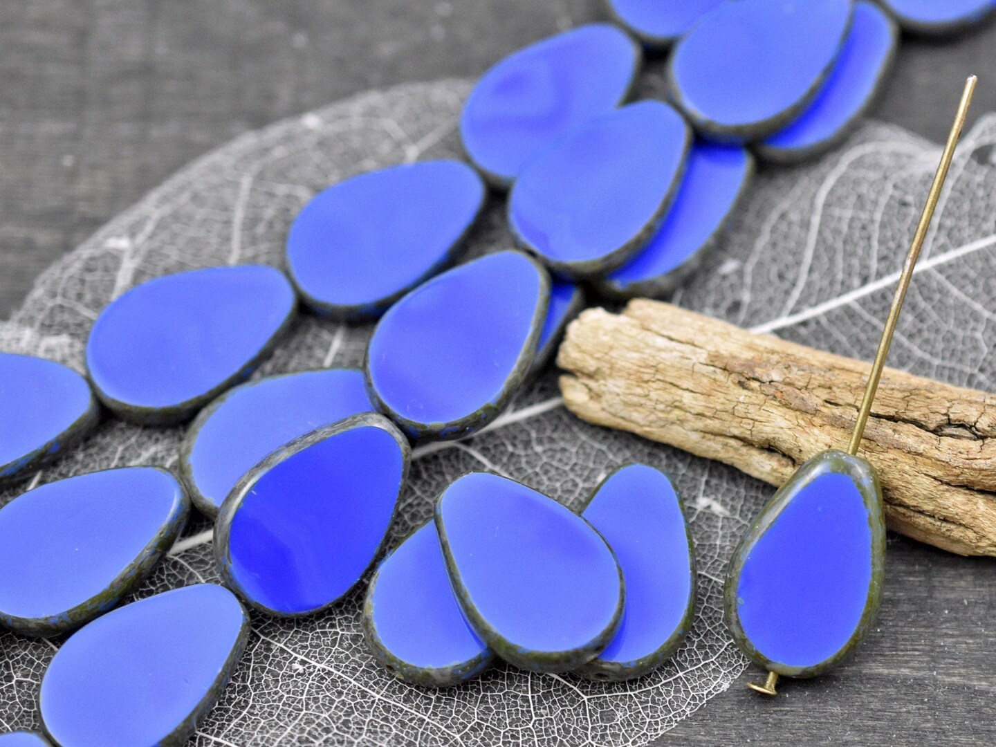 *8* 12x18mm Opaque Cornflower Blue Picasso Table Cut Flat Teardrop Beads