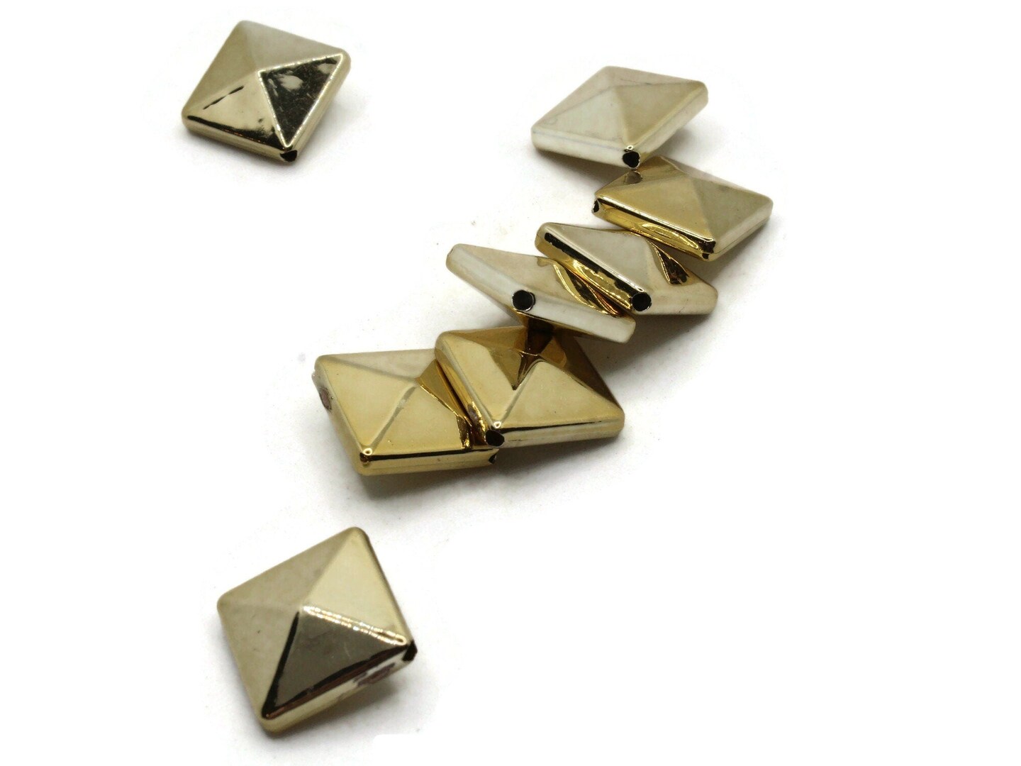 8 15mm Vintage Gold Plated Plastic Faceted Square Beads