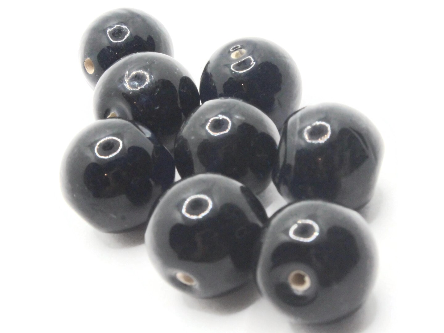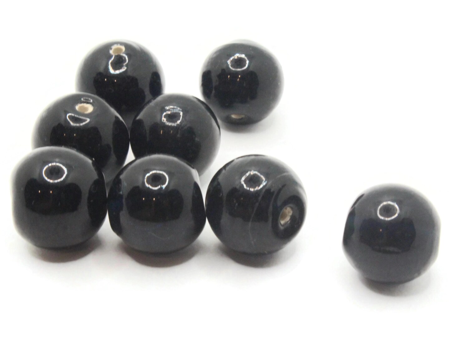 8 16mm Black Smooth Round Ceramic Glass Beads