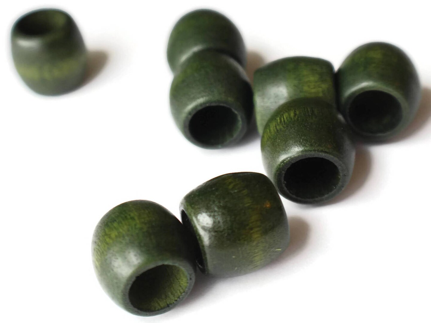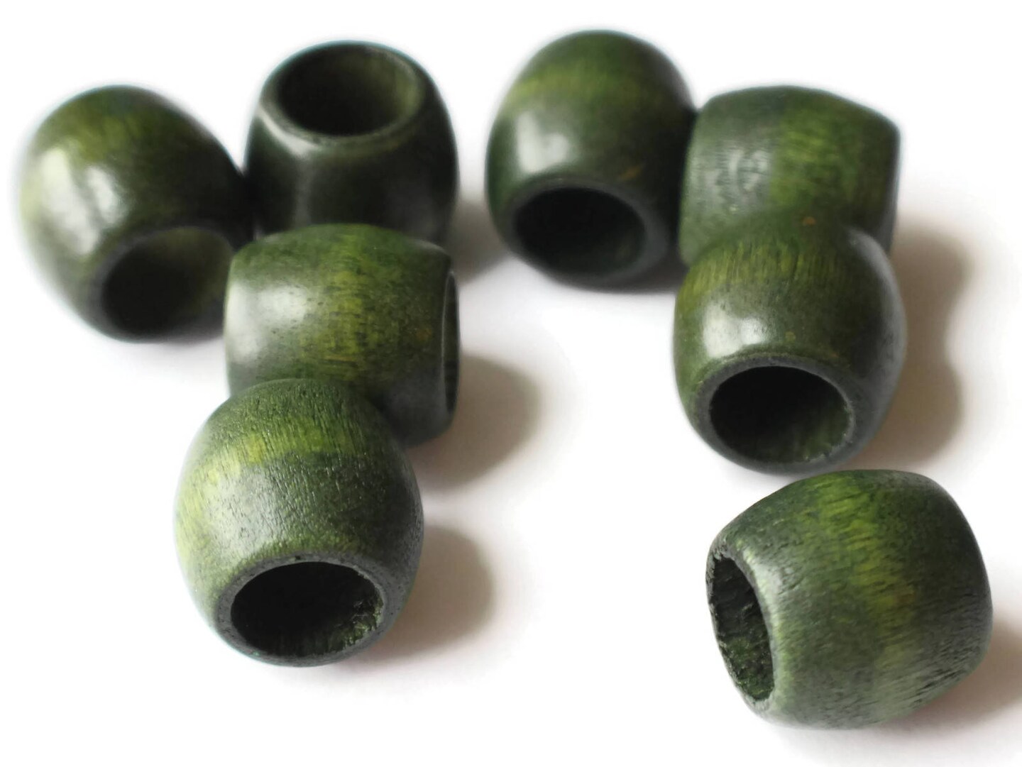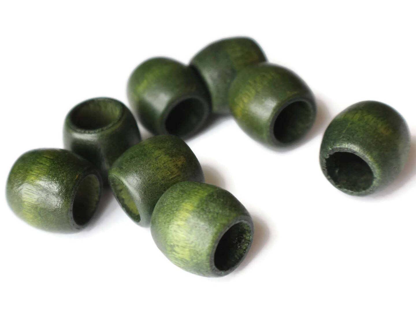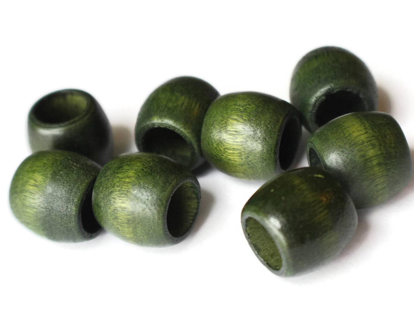 8 17mm Wooden Barrel Beads Large Hole Green Vintage Wood Beads bO2