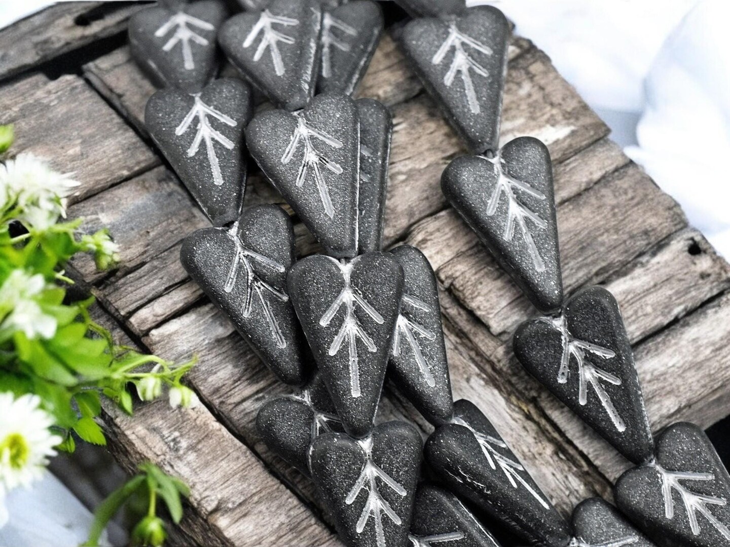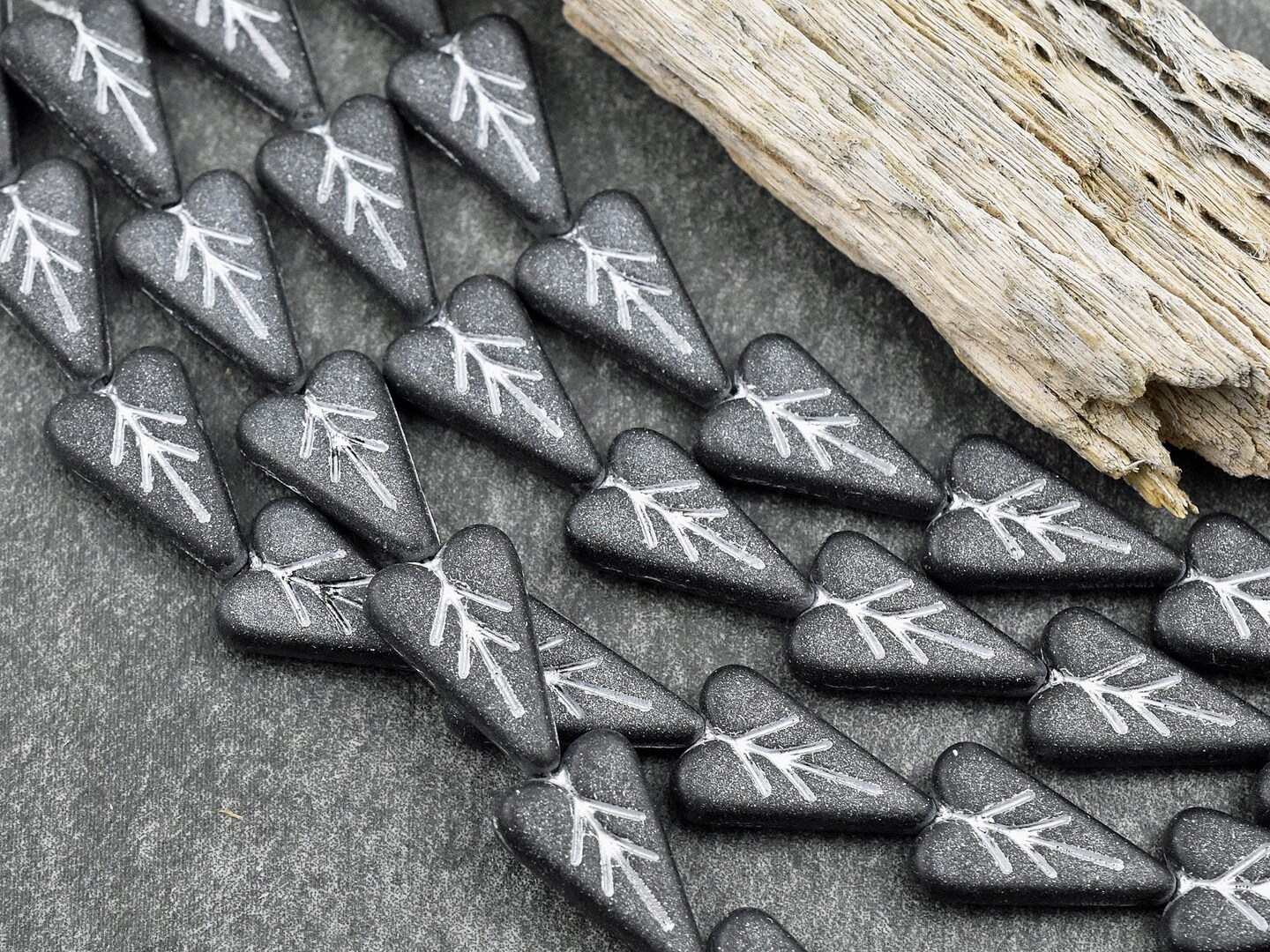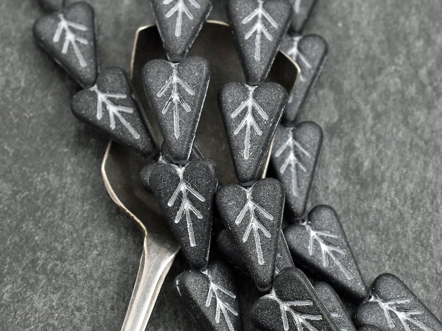 *8* 17x11mm Silver Washed Matte Jet Black Heart Leaf Beads
