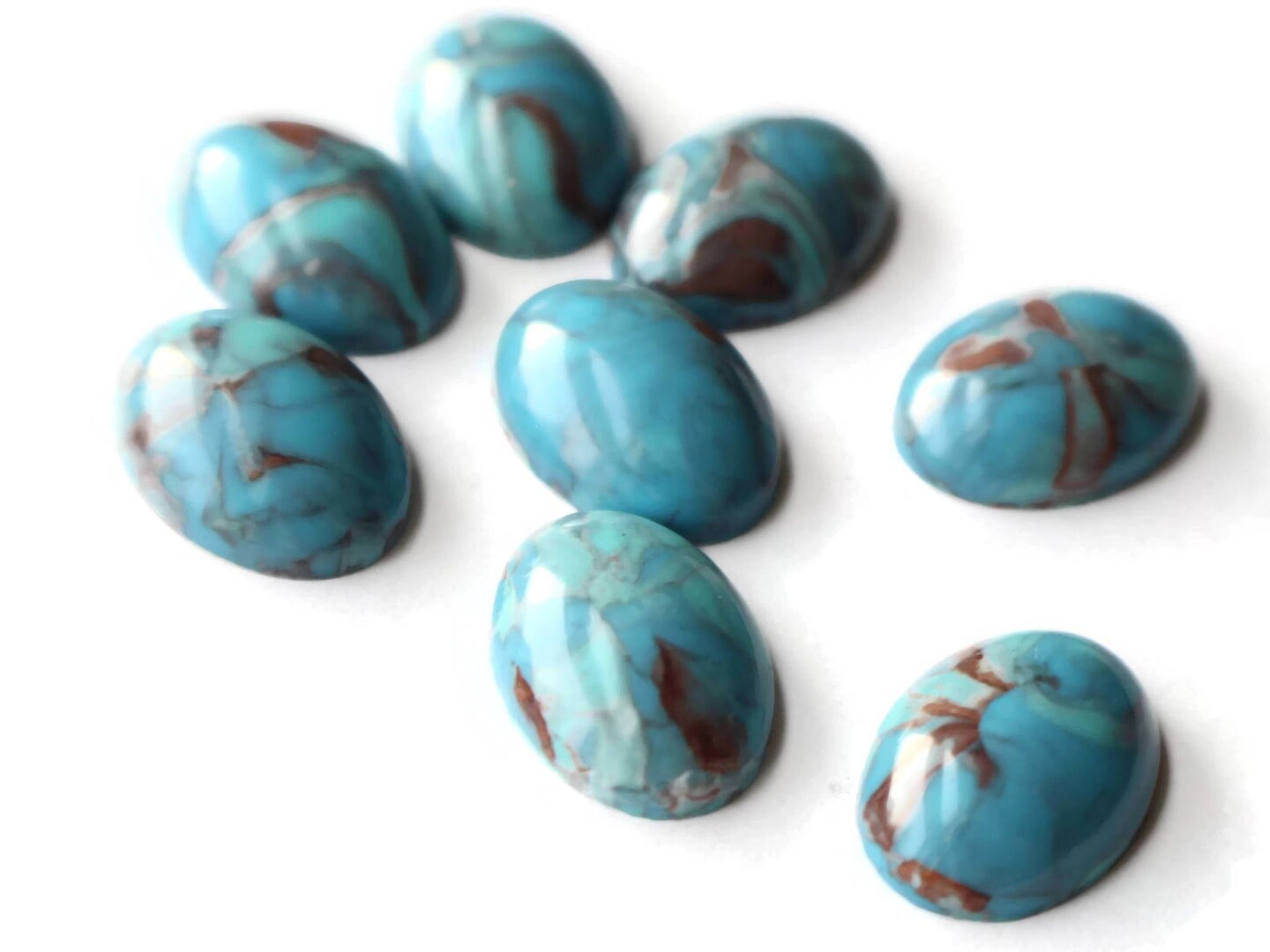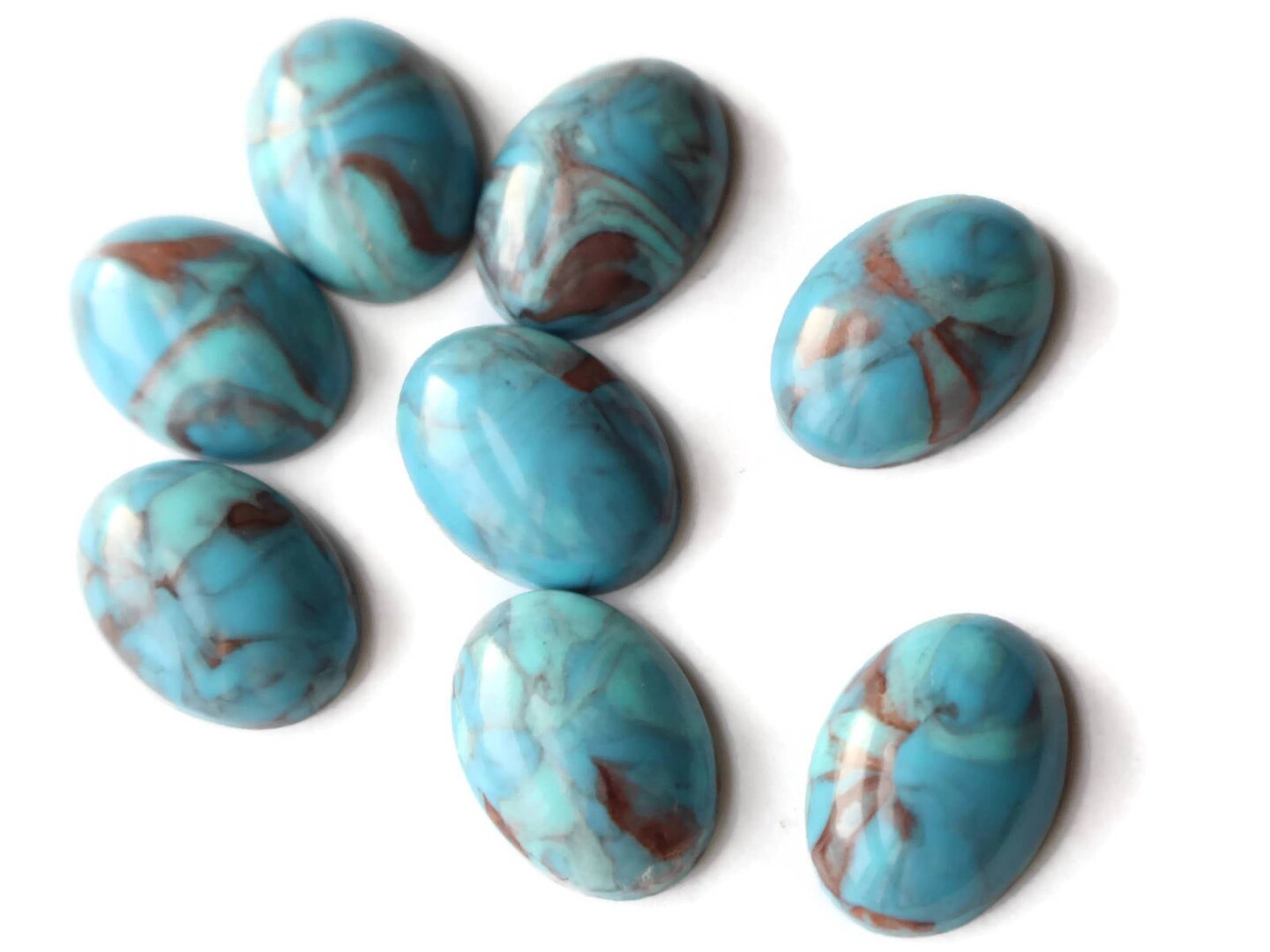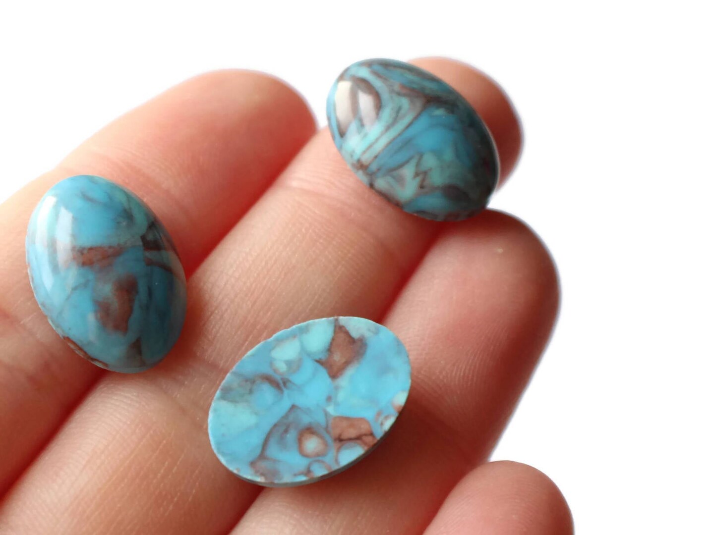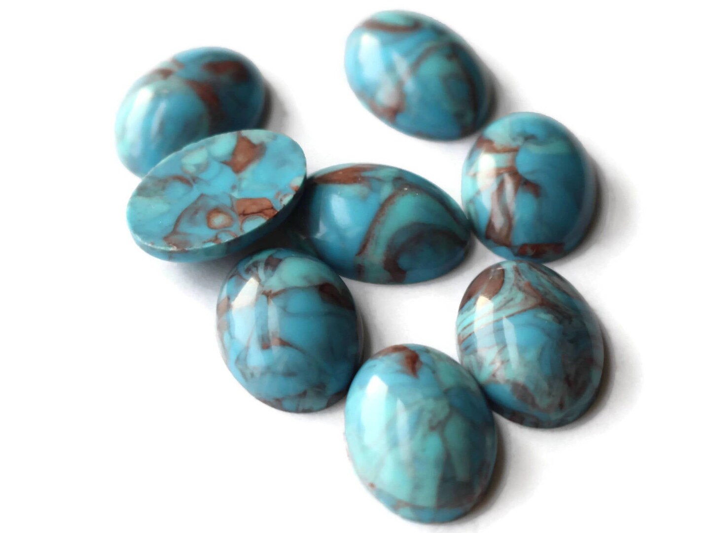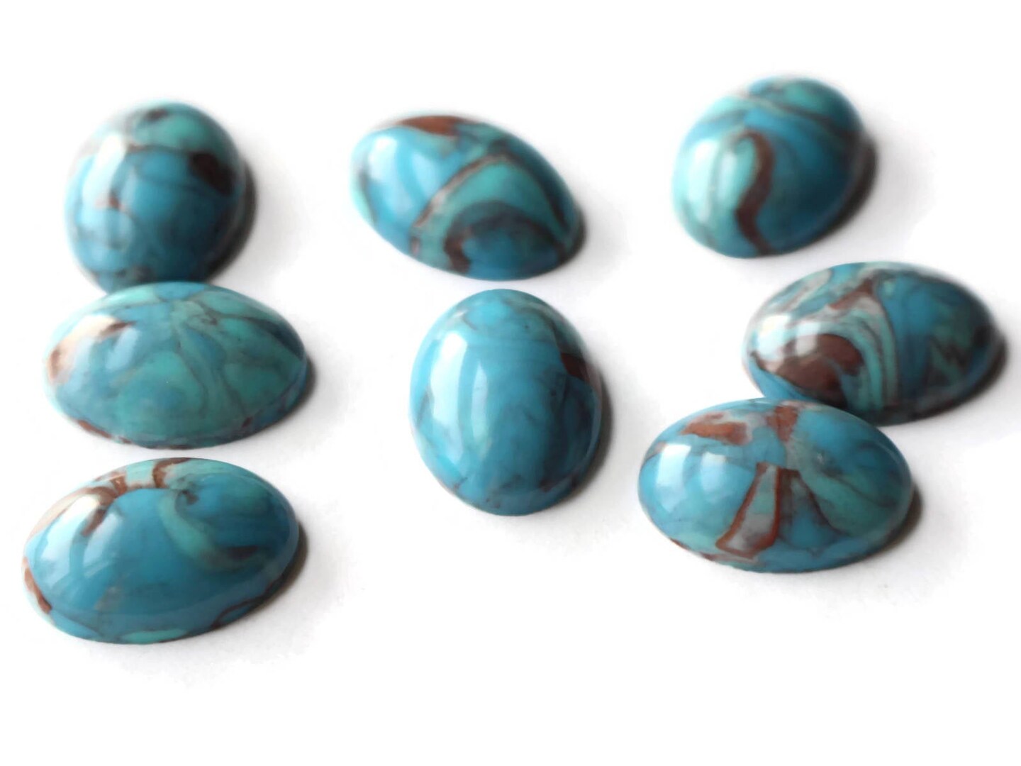 8 18x13mm Blue Oval Vintage Japanese Lucite Cabochons Imitation Turquoise Cabochons